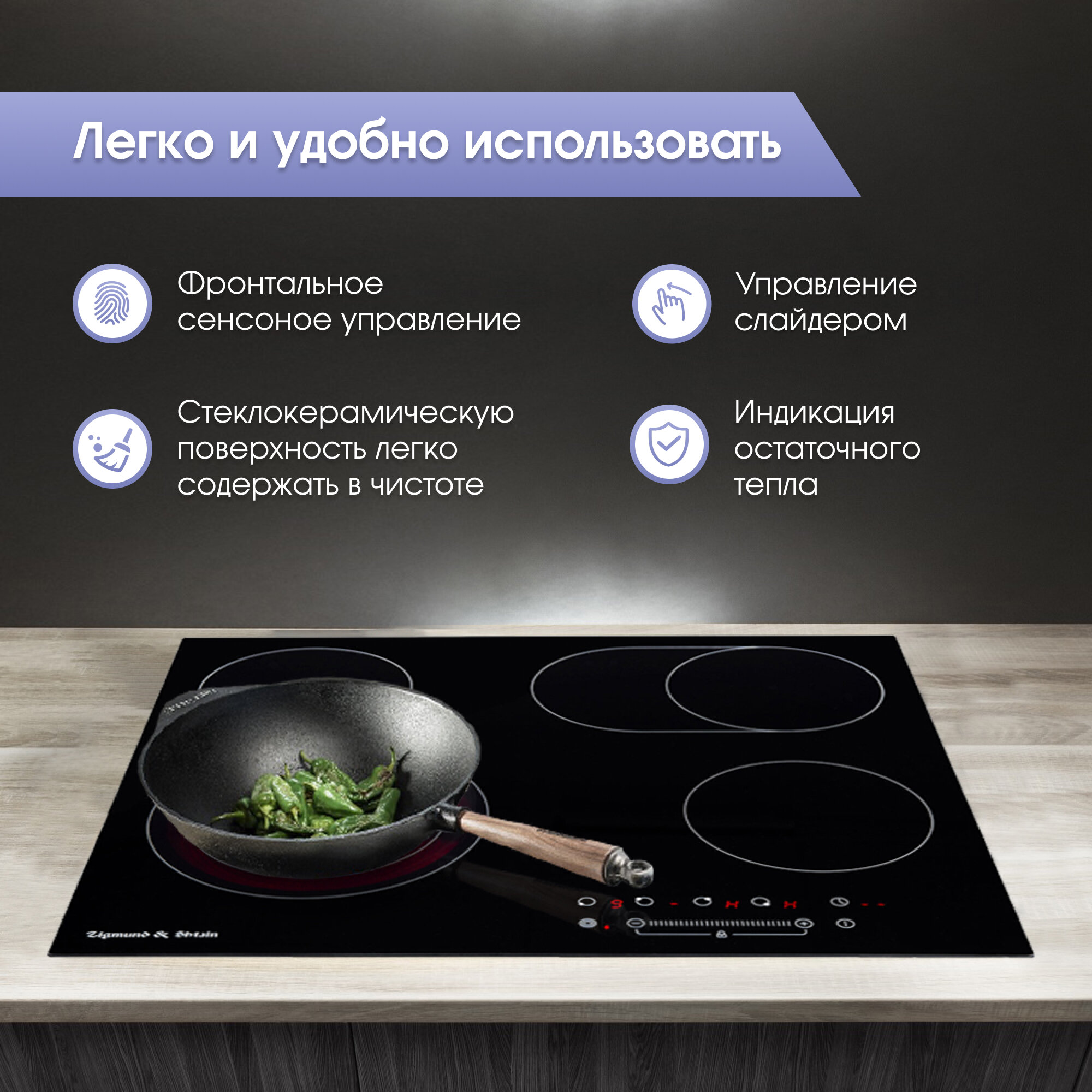 Стеклокерамическая поверхность Zigmund & Shtain CN 38.6 B, 60 см, управление сенсорное, черный, Китай