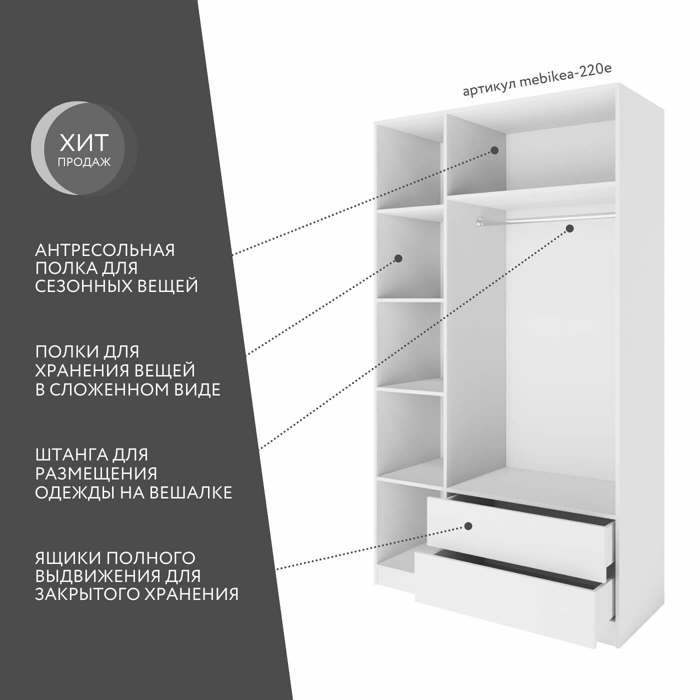 СохранитьШкаф Mebikea-220e распашной белый современный минимализм для прихожей и спальни интересное: