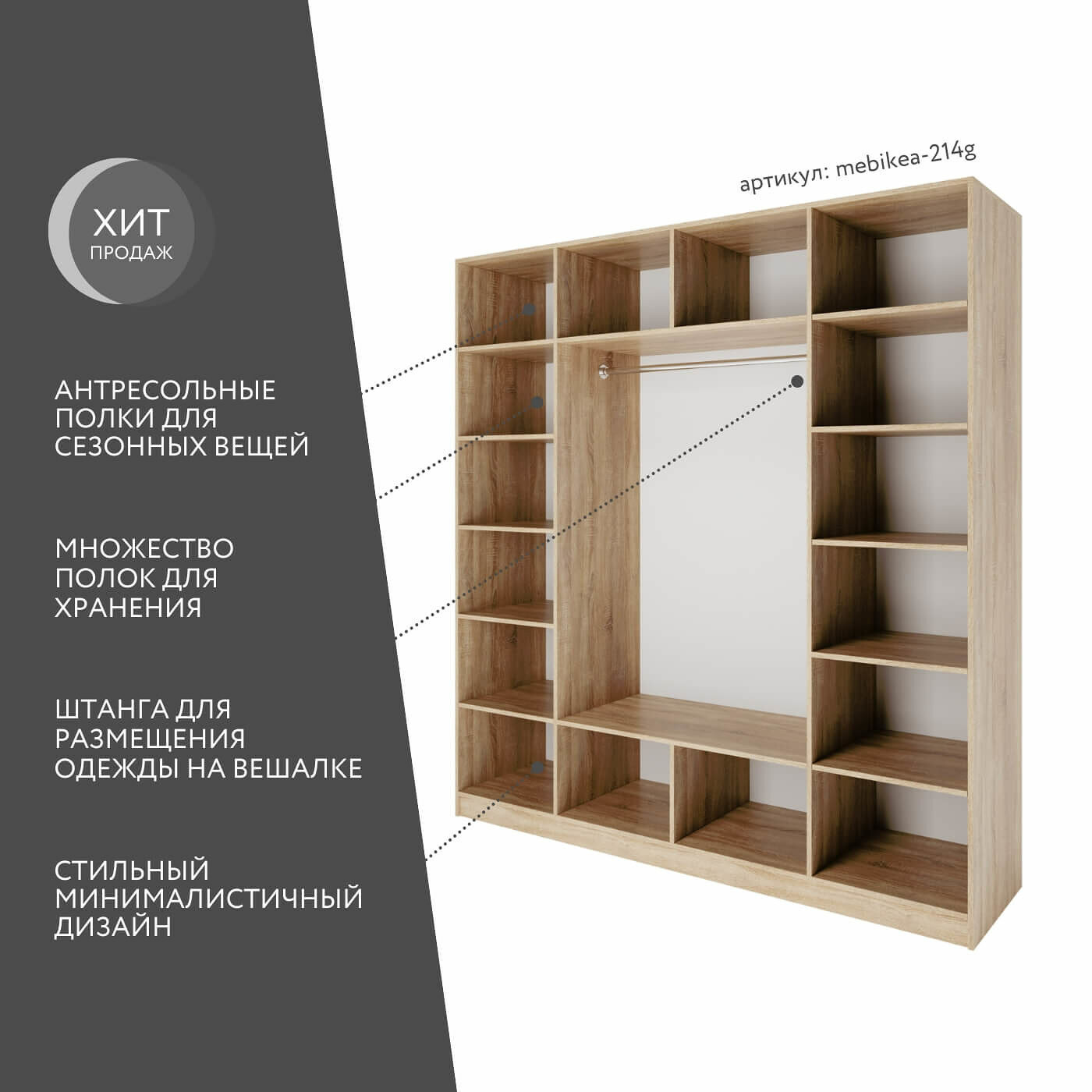 Шкаф Mebikea-224g дуб сонома современный минимализм для прихожей и спальни