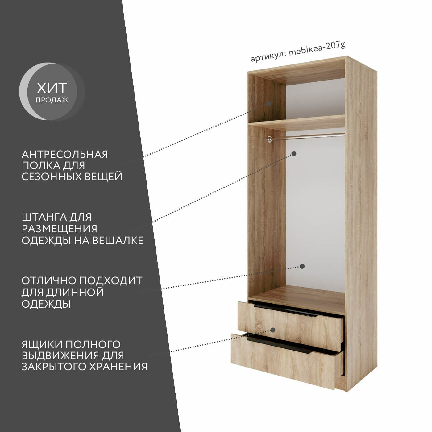 Шкаф Mebikea-225g дуб сонома современный минимализм для прихожей и спальни