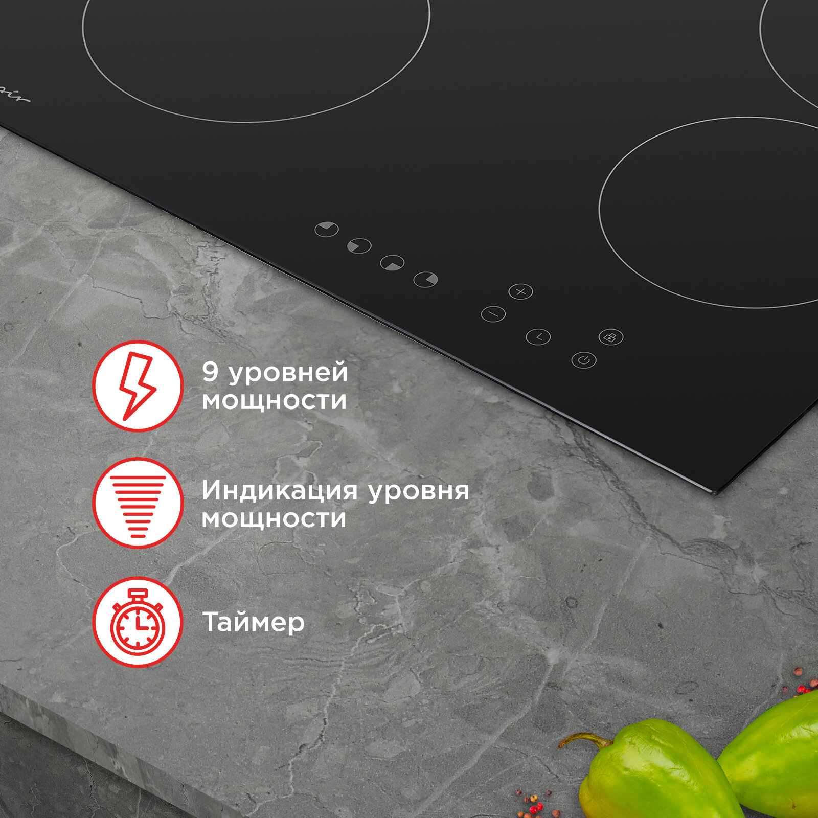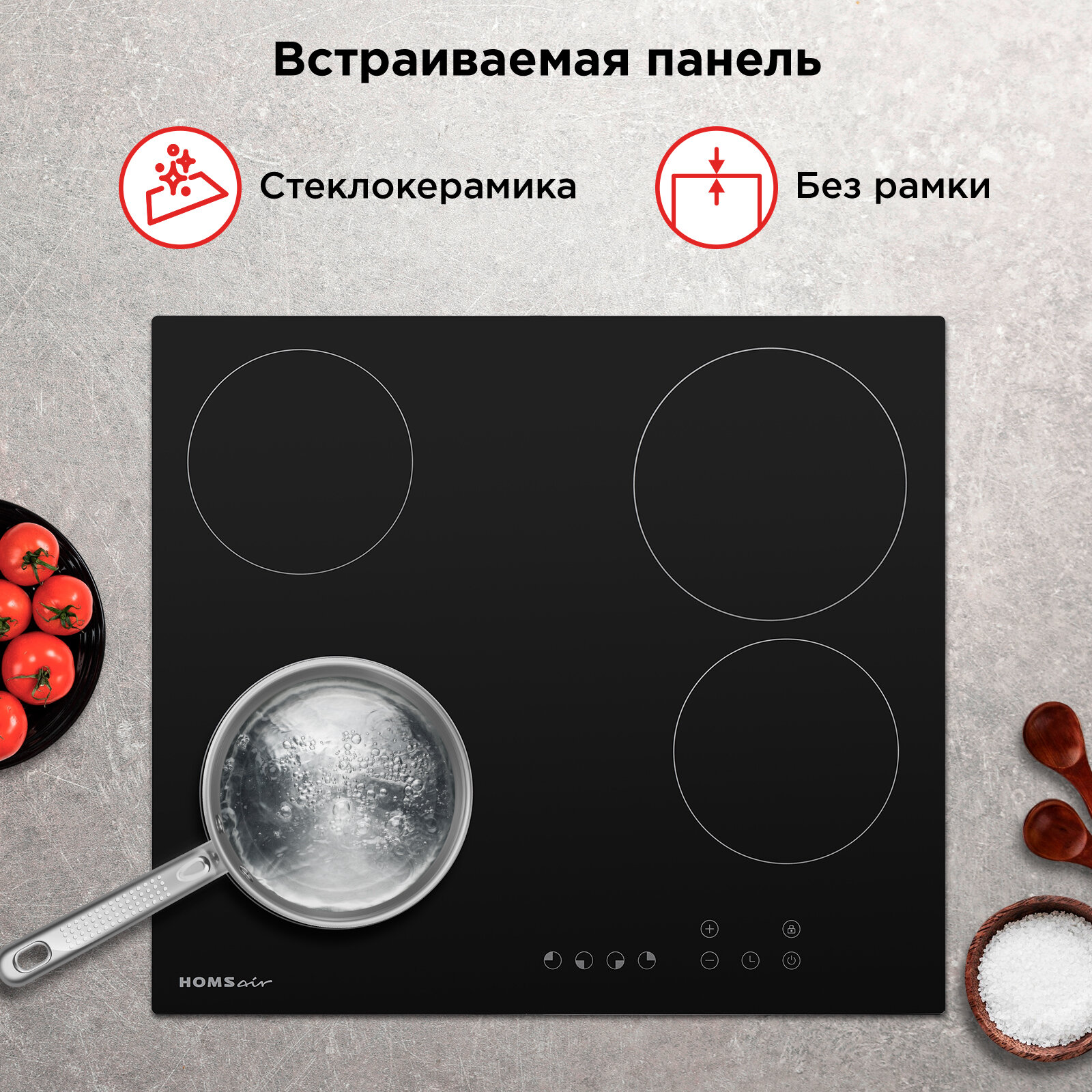 Встраиваемая электрическая панель HOMSair/ электрическая, 580х510х50 мм, сенсорное управление, 4 конфорки, стеклокерамика, черный цвет