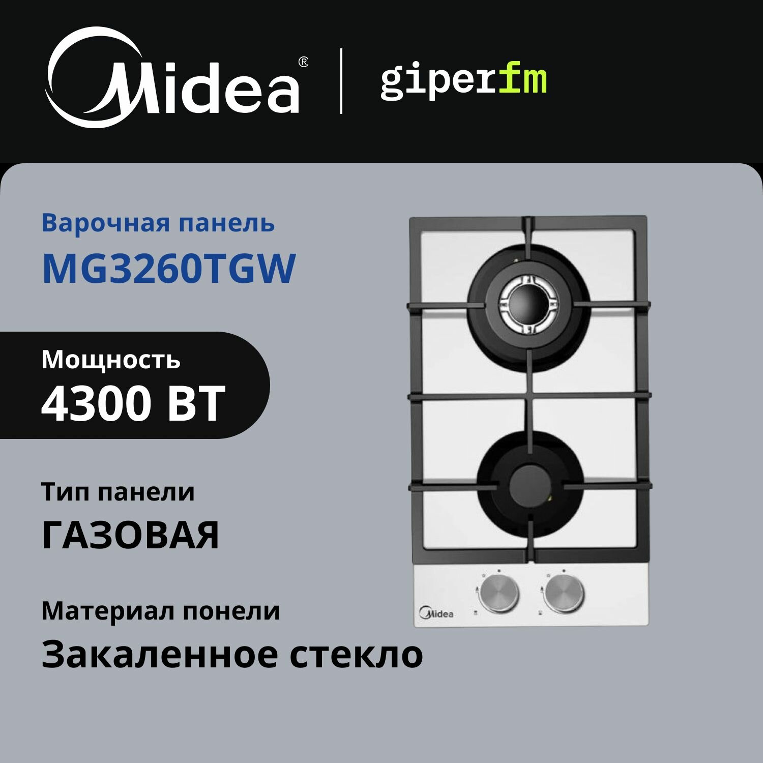 Газовая варочная панель Midea Mg3260tgw Mg3260tgw .