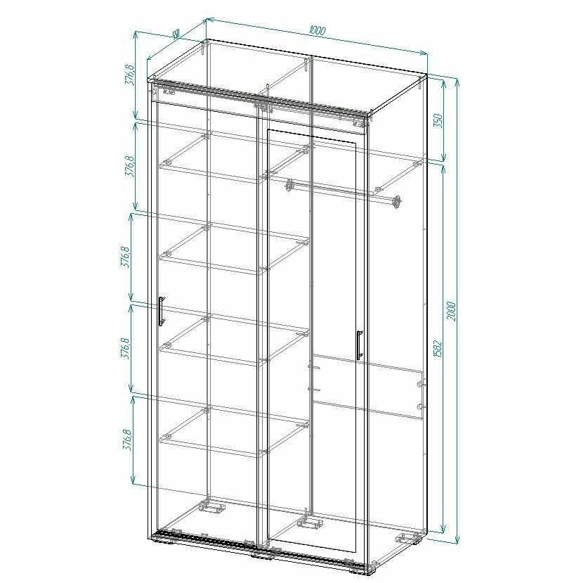 Купить Шкаф купе с полками и штангой с зеркалом "МНР 4" 100х200х55 Белый