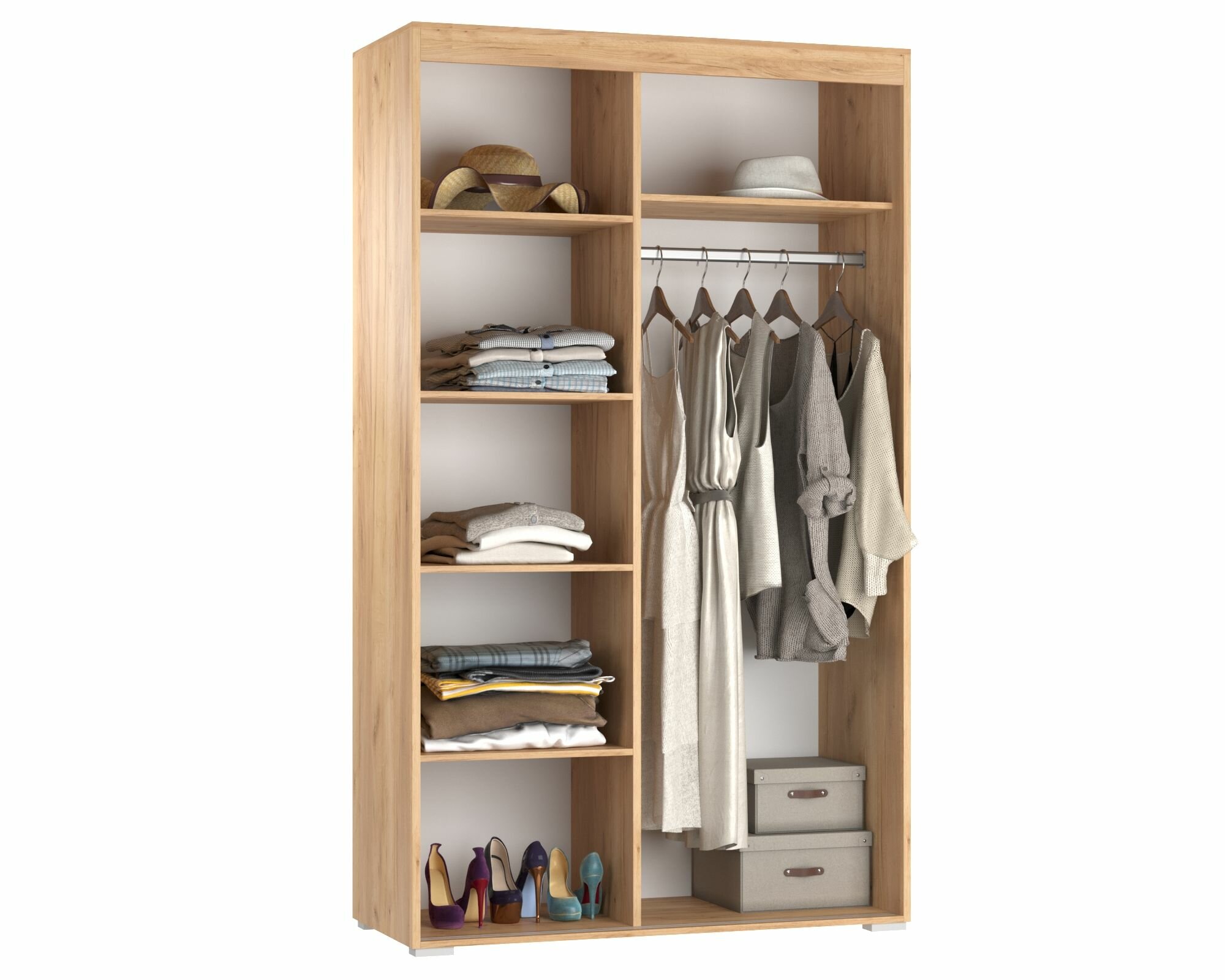 Шкаф для одежды распашной Нонтон Луас, 120 см, 7 полок и штанга, белый глянец
