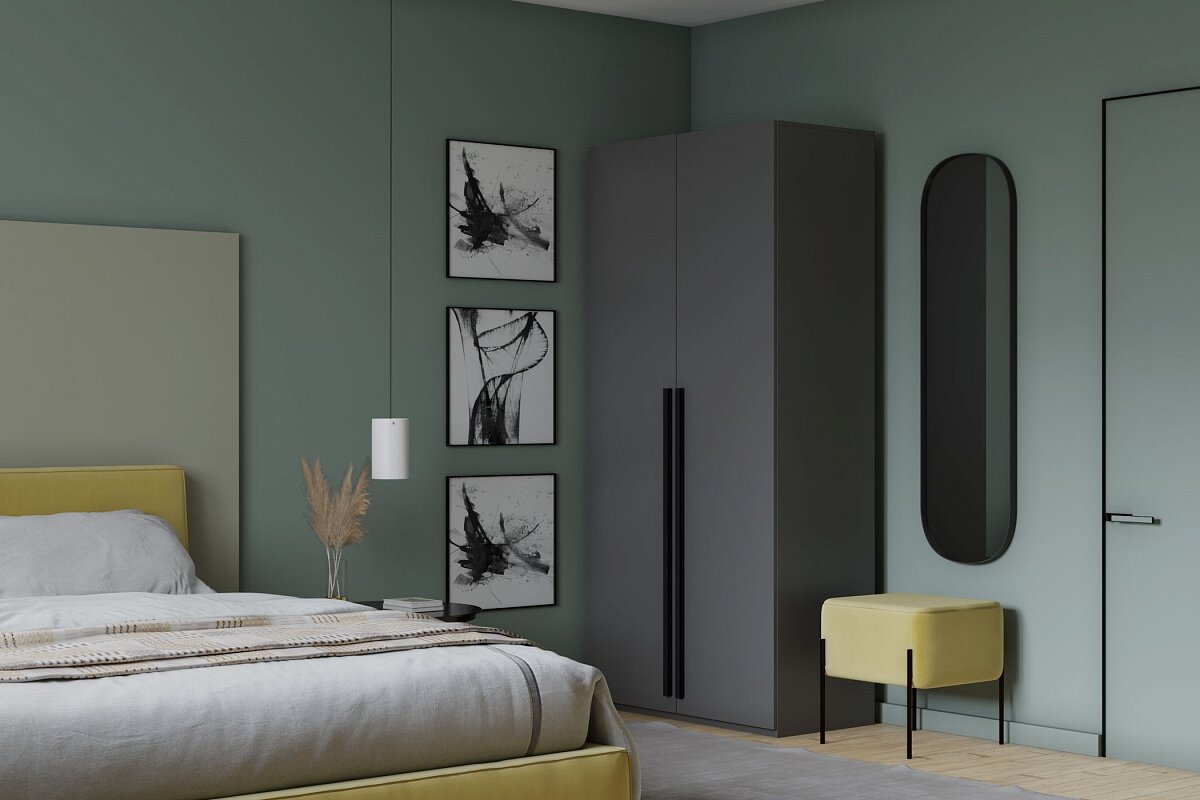 Шкаф распашной МебельЛэнд24 Лорена Пакс - 2 Графит 90x70x210 серый для одежды двухдверный