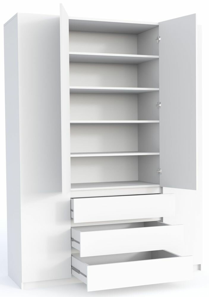 Шкаф распашной Мори-3 Белый для одежды двухдверный 100*250*50 Мегамебель