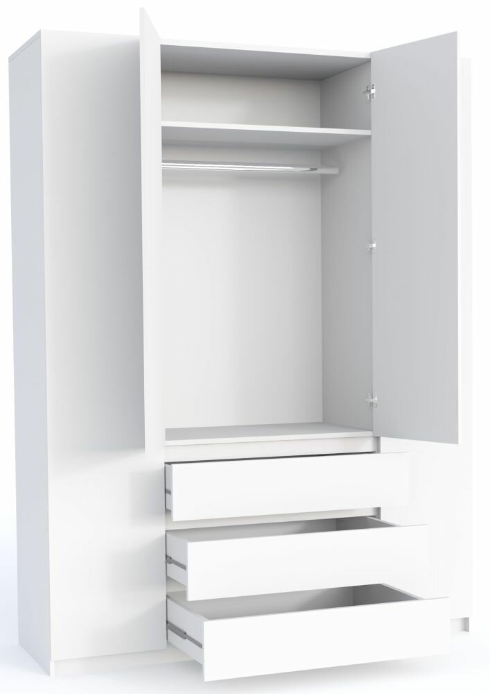 Шкаф для одежды распашной Нонтон Луас, 120 см, 7 полок и штанга, белый глянец