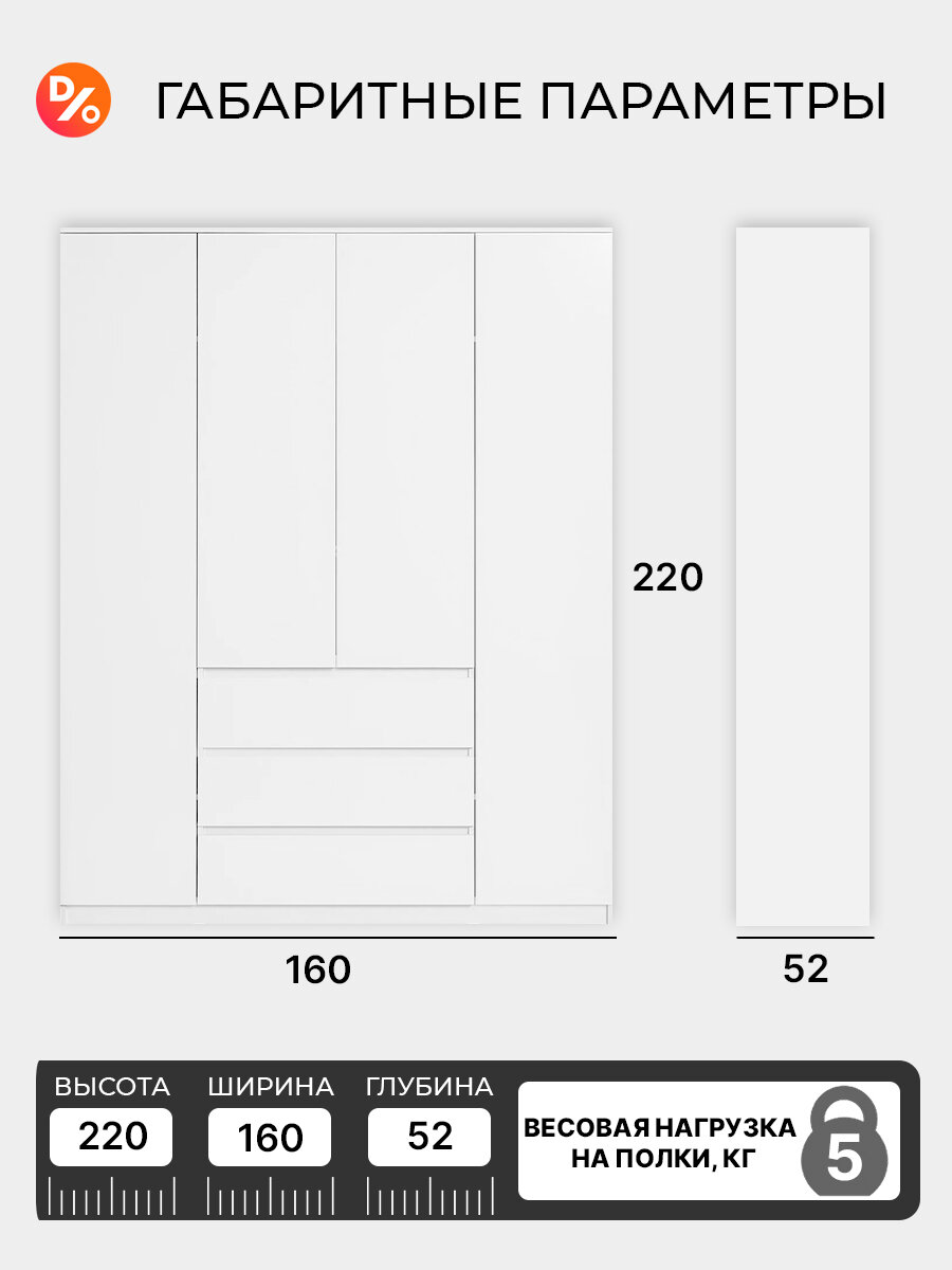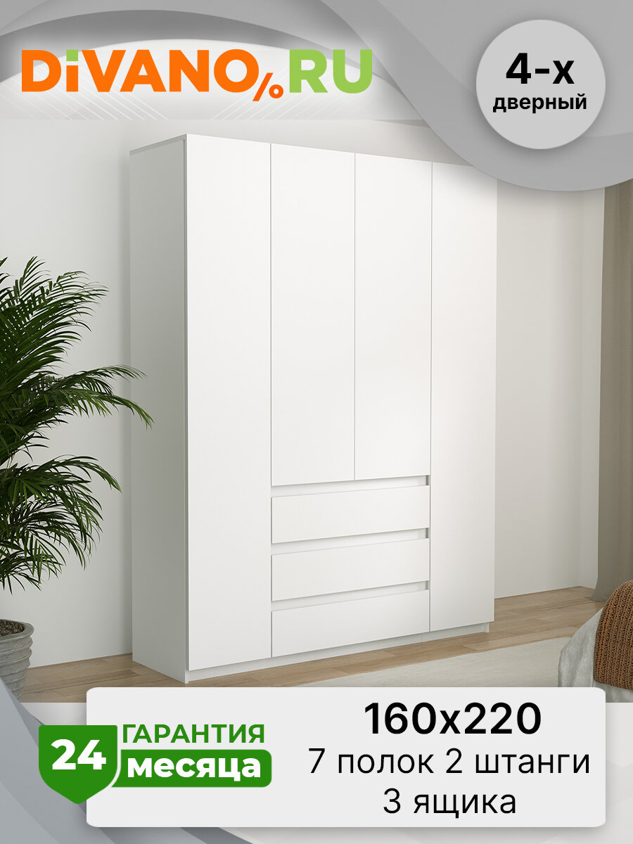 Шкаф распашной Акация 4-х дверный 1.6 м (белый древесный) интересное: