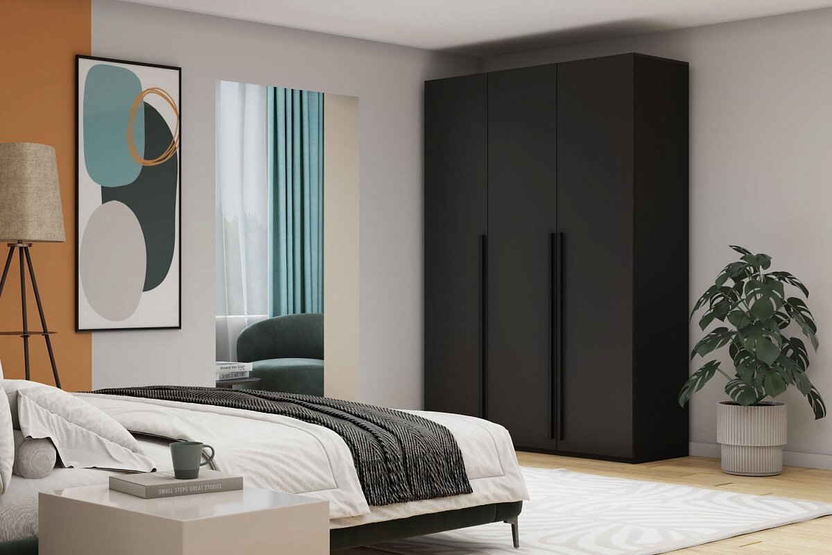 Шкаф распашной МебельЛэнд24 Лорена Пакс - 3 Черный 120x70x200 для одежды трехдверный