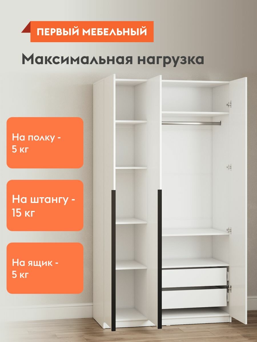 Шкаф для одежды распашной Нонтон Луас, 120 см, 7 полок и штанга, белый глянец
