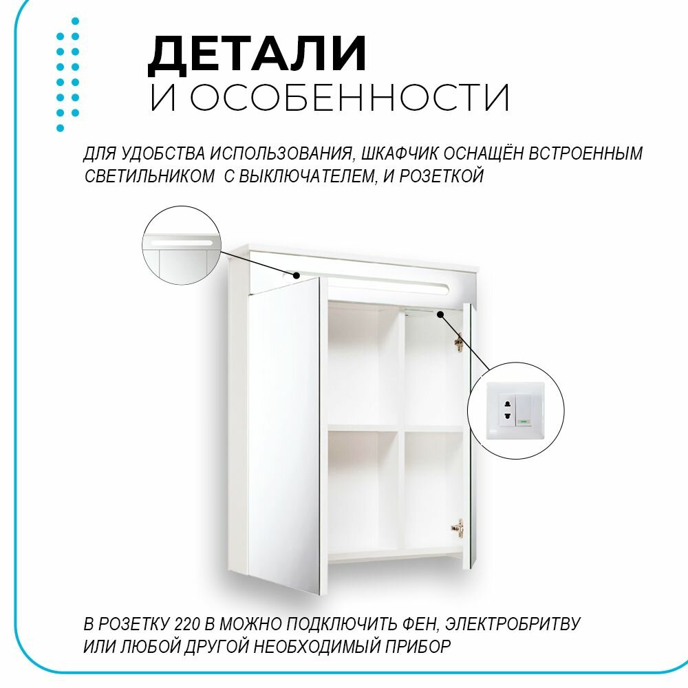 Шкаф в ванную с зеркалом с подсветкой Runo Парма 60 полка для ванной интересное: