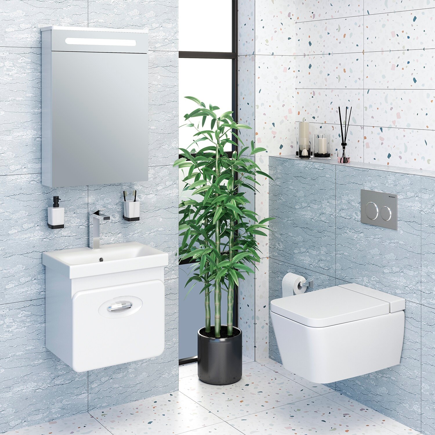 Шкаф в ванную с зеркалом с подсветкой Runo Парма 60 полка для ванной