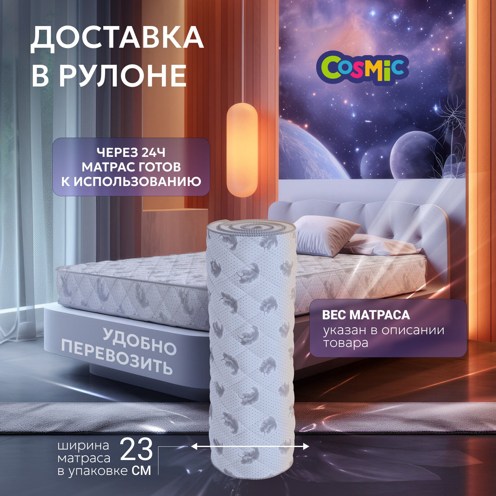 СохранитьМатрас 120х200 беспружинный для кровати ортопедический полутороспальный Cosmic Galaxy высота 10 см средней жесткости интересное: