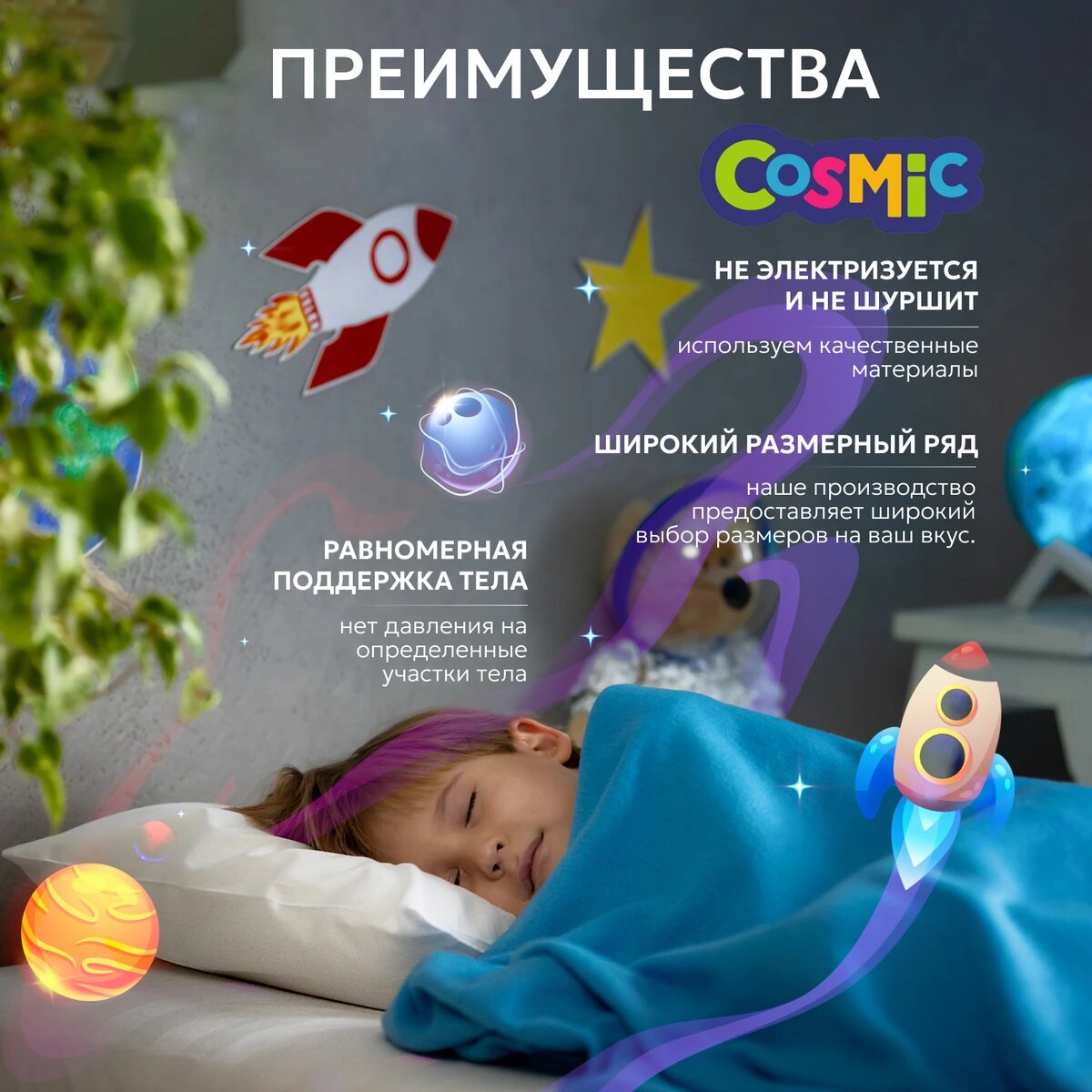 Матрас 185х110 для кровати беспружинный "Cosmic Galaxy" высота 10см