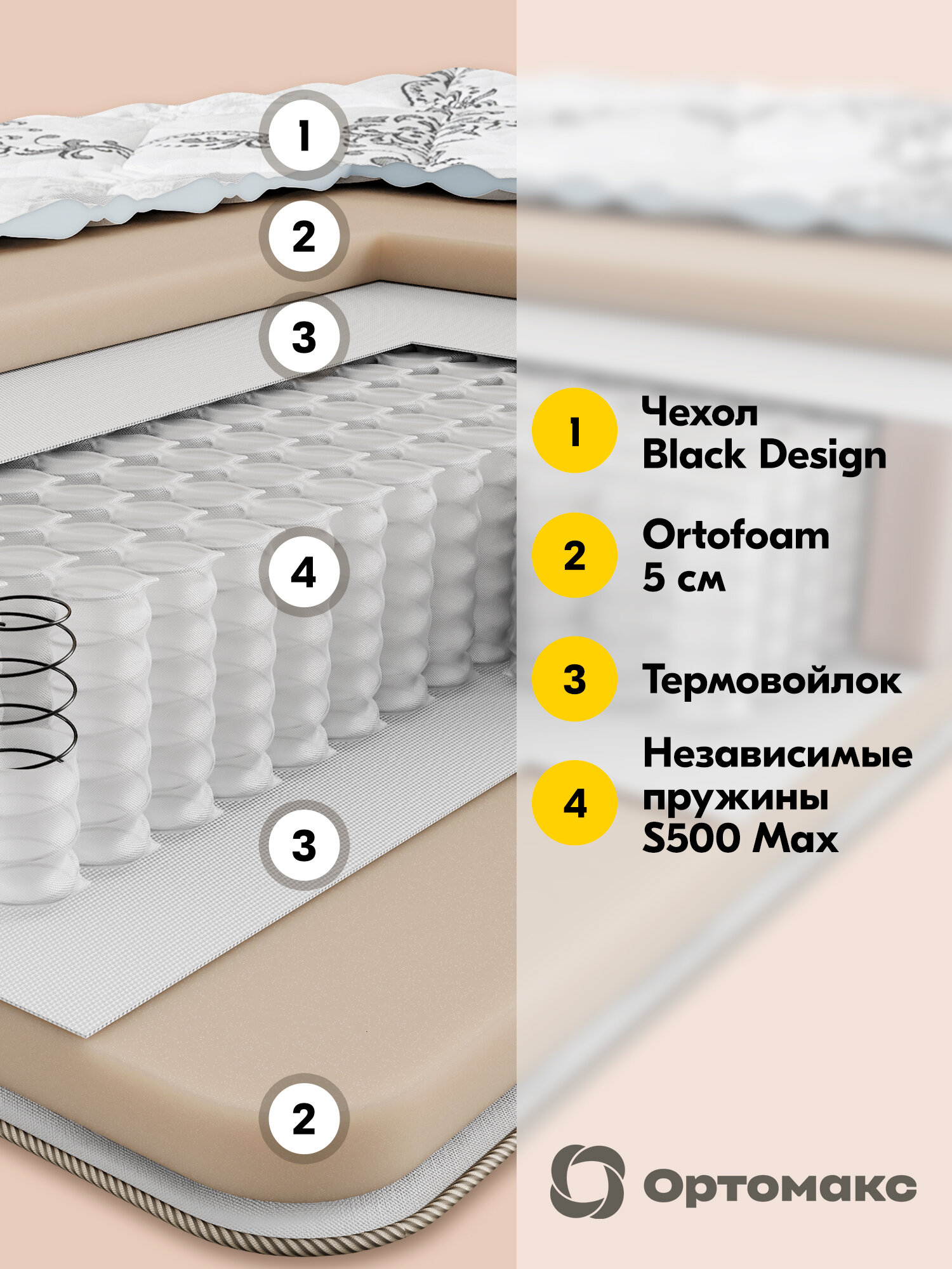 Высокий матрас 160х200х40 ортопедический, средней жесткости, высотой 40 см Ortomax Black Pro Max, независимые пружины