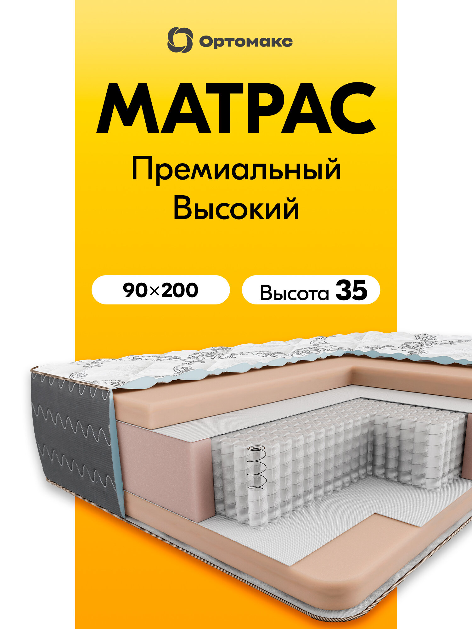 СохранитьВысокий матрас 90х200х35 ортопедический, пружинный, средней жесткости Ortomax Ultimate Orto спальный, высота 35 см интересное: