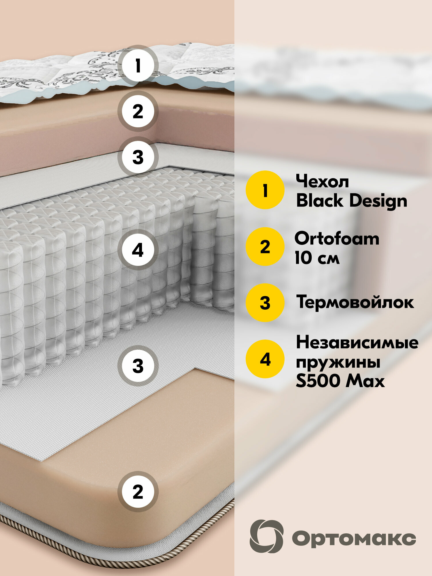 СохранитьВысокий матрас 200х200х40 ортопедический, средней жесткости, высотой 40 см Ortomax Black Pro Max, независимые пружины интересное: