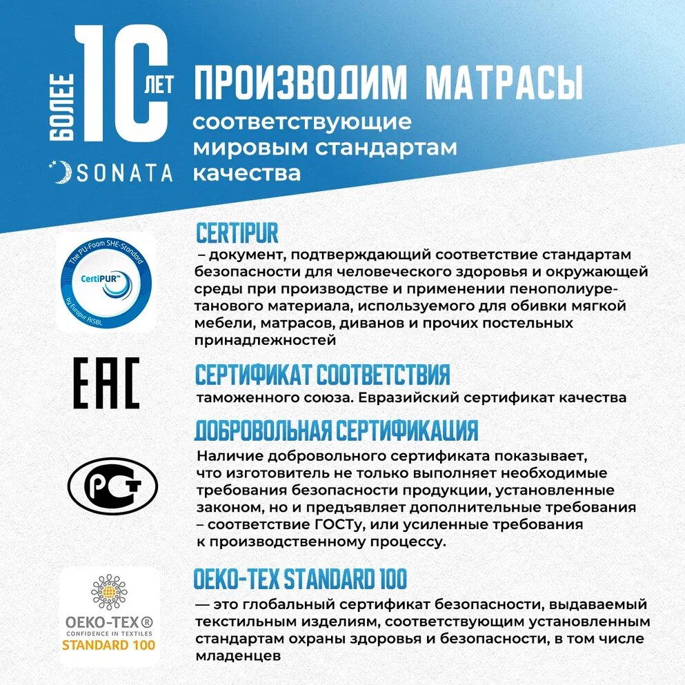 Матрас SONATA, беспружинный, ортопедический, 110x200х18 см, белый