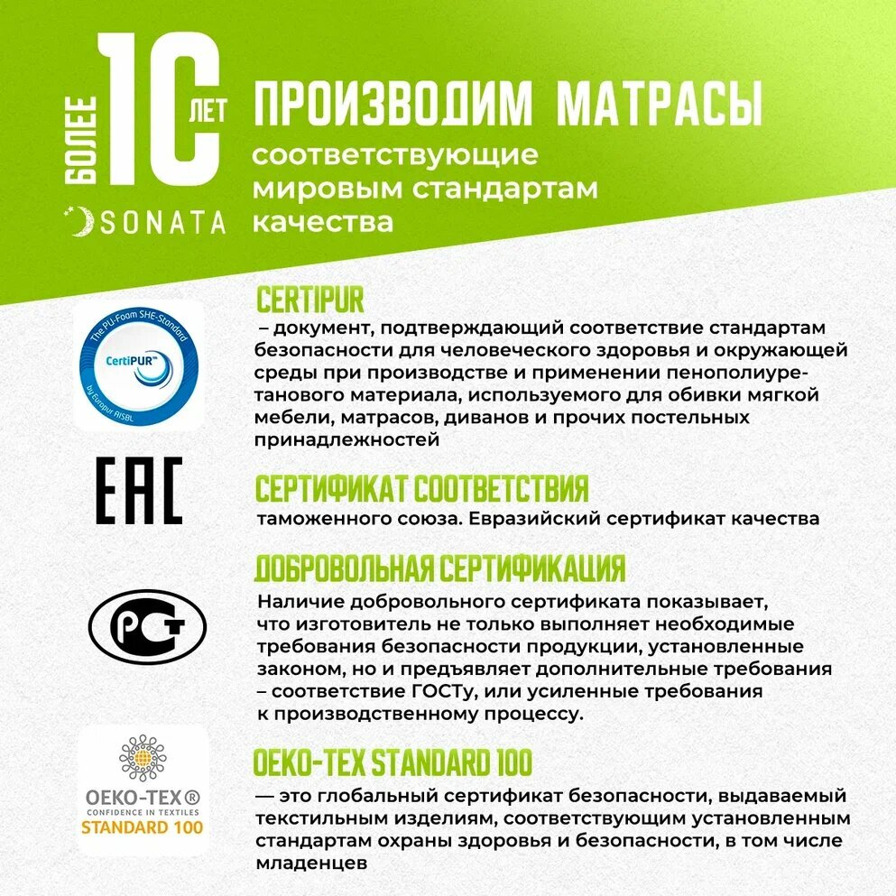 Матрас SONATA, беспружинный, ортопедический, 110x200х18 см, белый