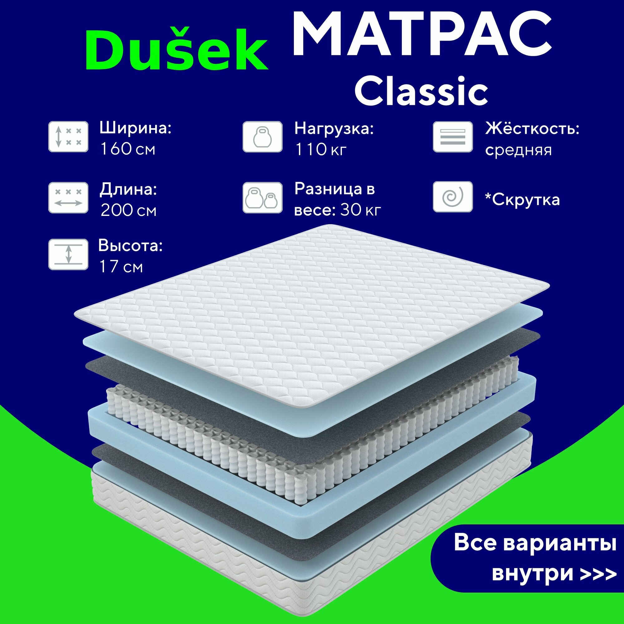 СохранитьДвуспальный матрас 160х200 DUŠEK Classic M ортопедический эффект мягкий с независимым пружинным блоком интересное: