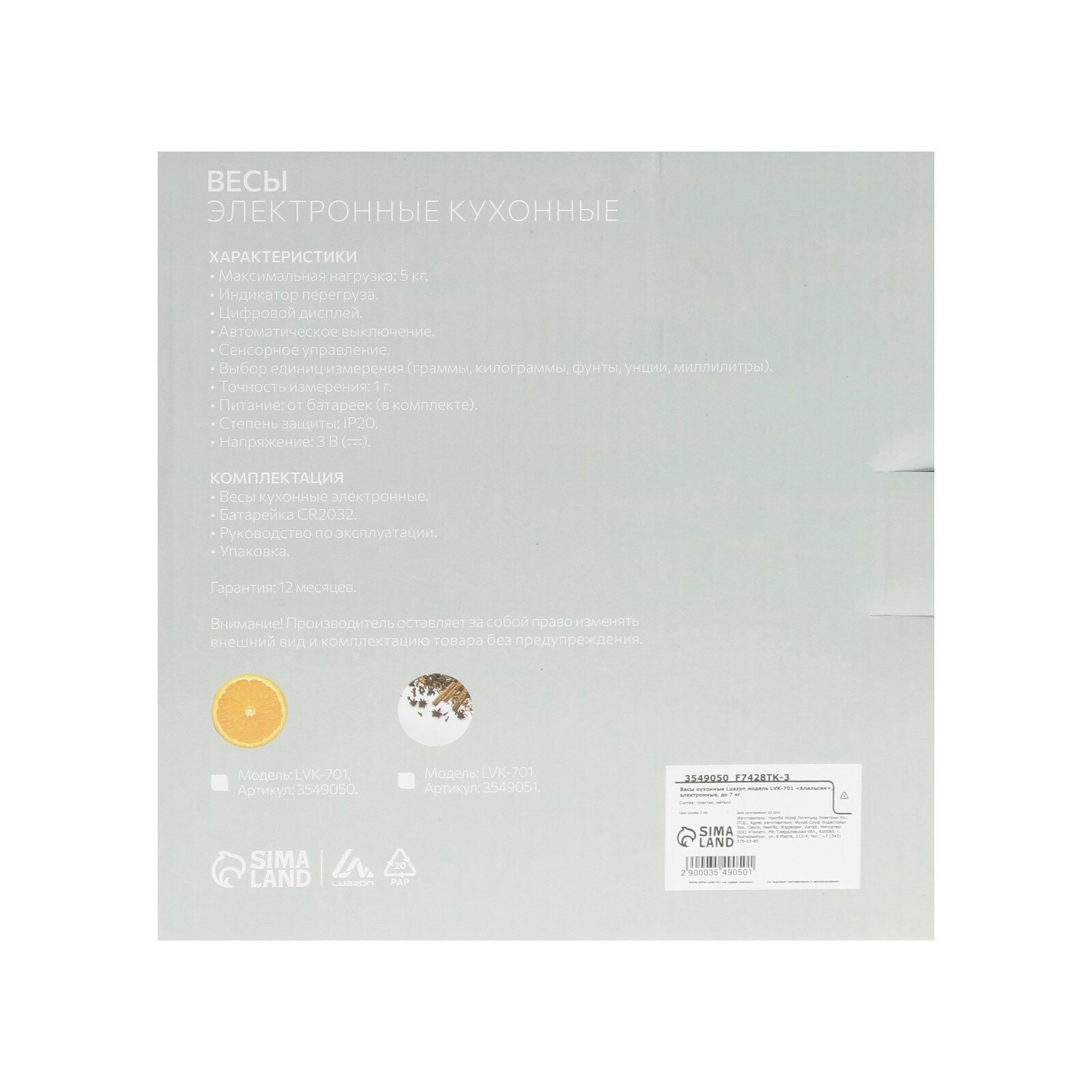 Весы кухонные Luazon LVK-701 "Апельсин", электронные, до 7 кг (1шт.)