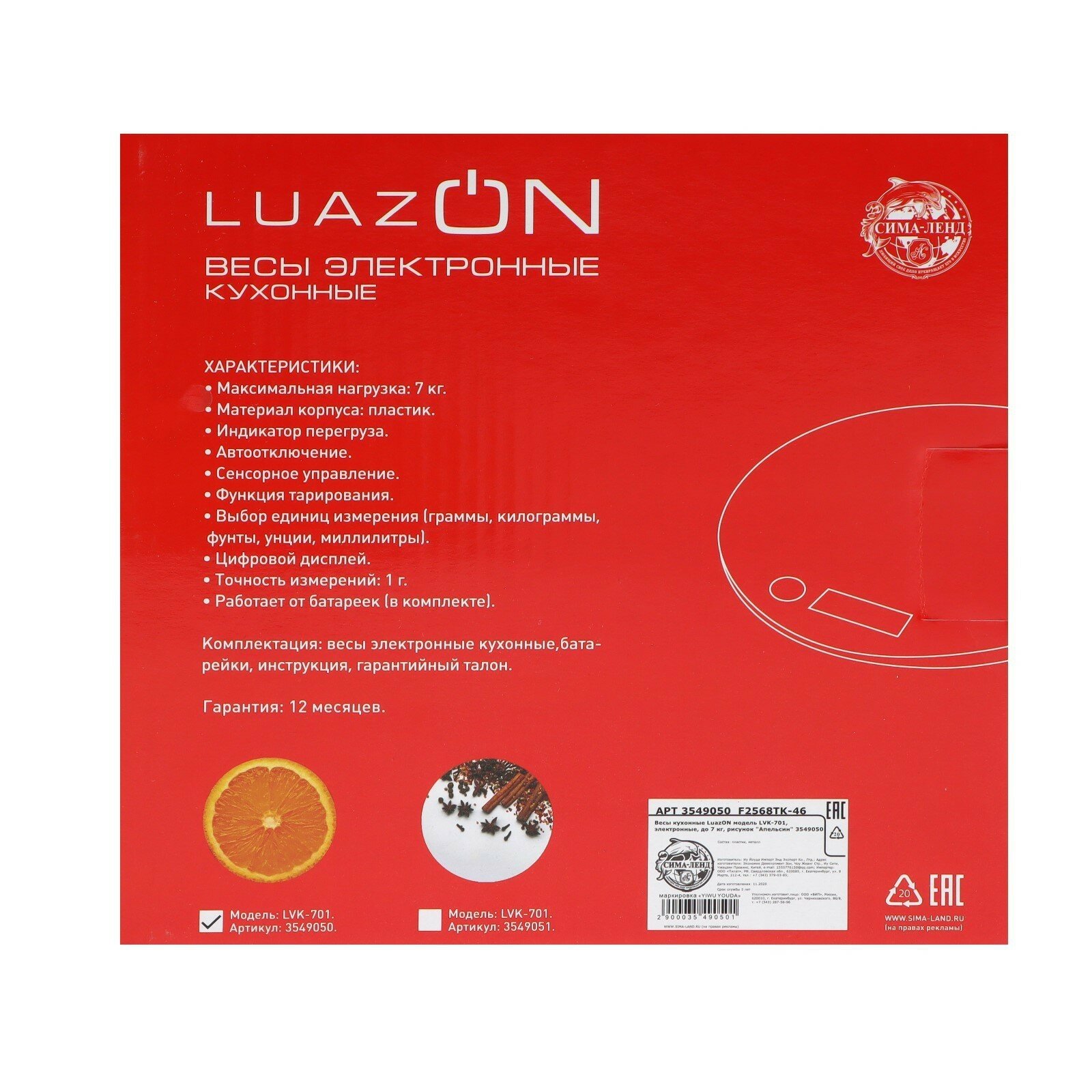 Кухонные весы Luazon Home Весы кухонные Luazon LVK-701 "Апельсин", электронные, до 7 кг
