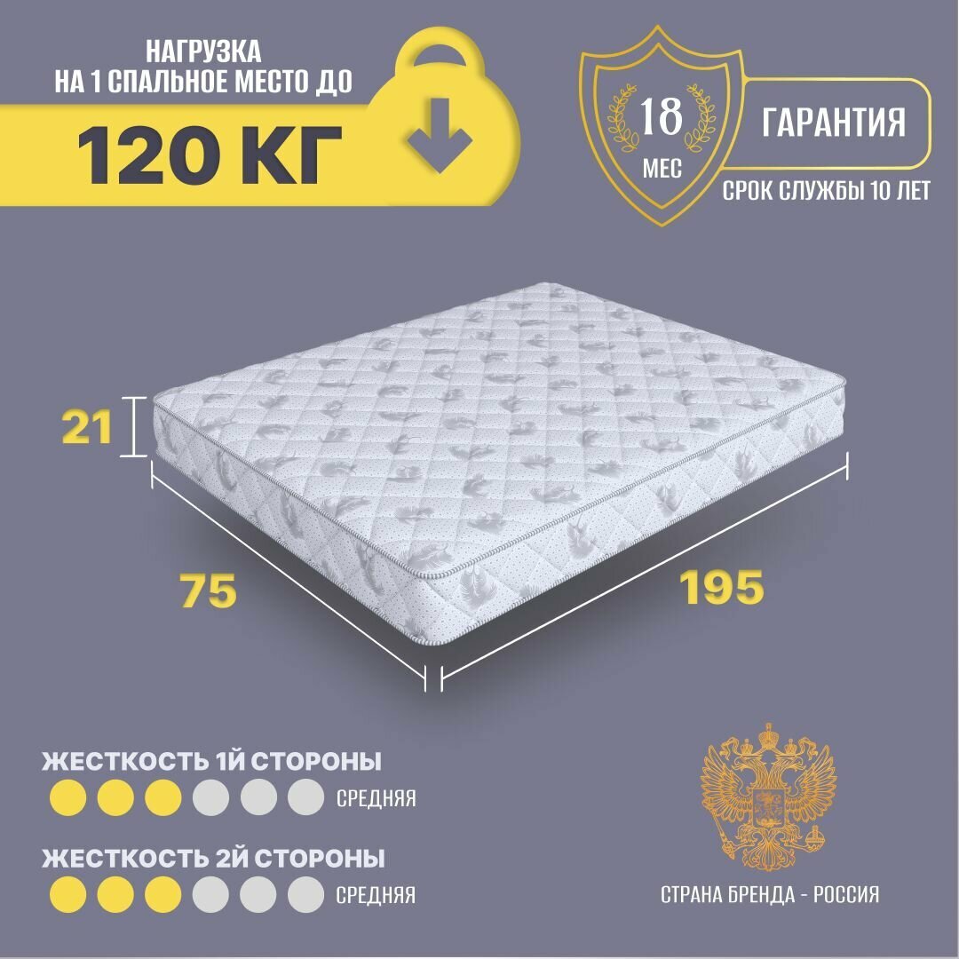 СохранитьМатрас 75х195 беспружинный детский анатомический в кроватку, Cosmic Meteor Joy, средне-жесткий 21 см интересное: