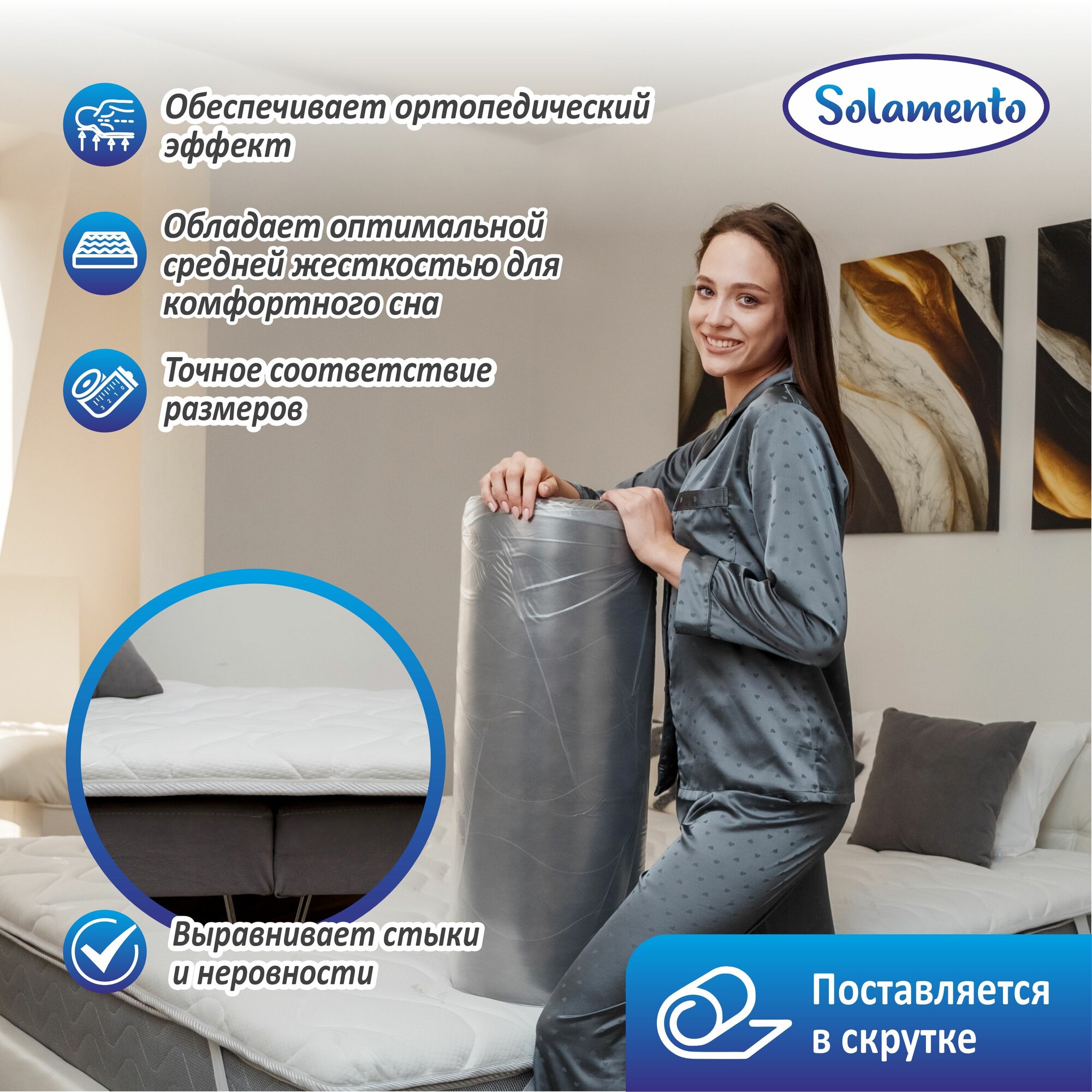Топпер наматрасник Solamento Twin 180х200, для кровати и дивана, беспружинный, ортопедический