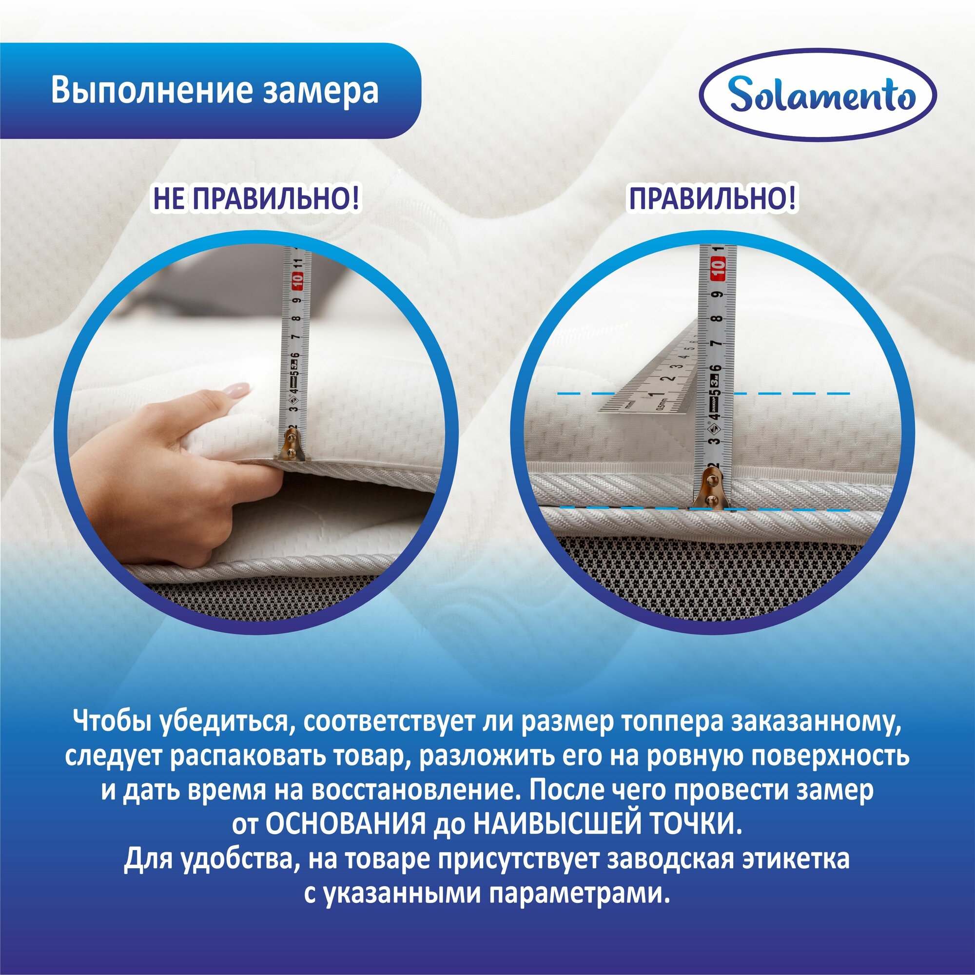 Топпер наматрасник Solamento Twin 180х195, для кровати и дивана, беспружинный, ортопедический