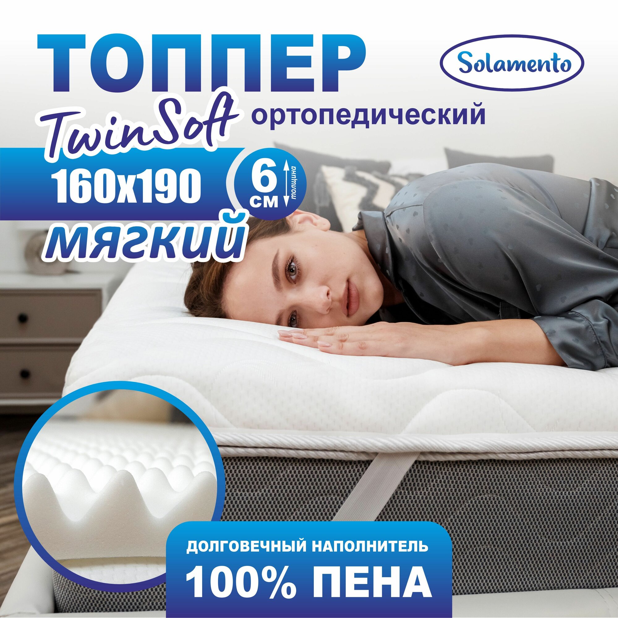 Купить Ортопедический топпер-матрас Solamento Twin Soft, 6 см 160х190