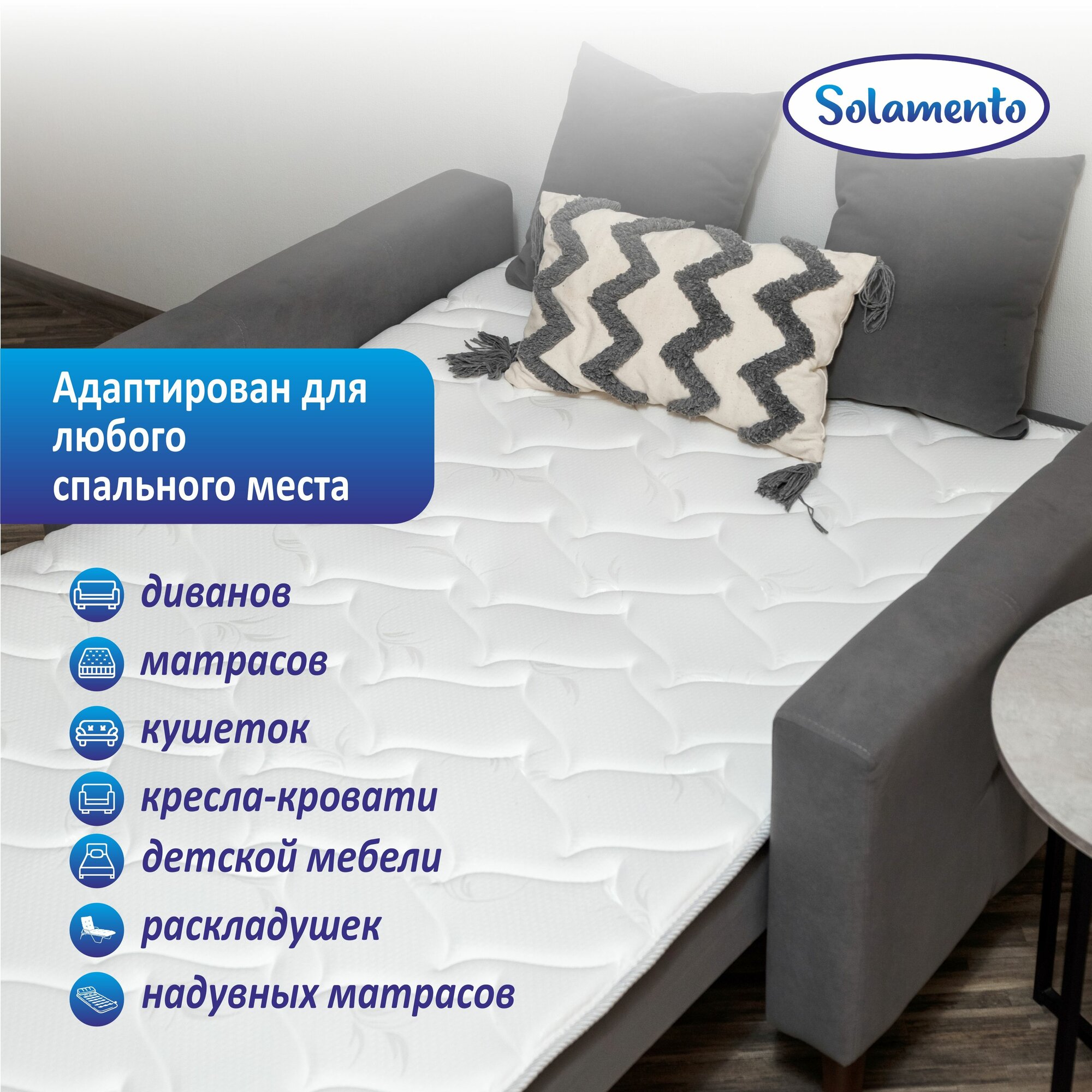 Купить Топпер наматрасник Solamento Twin 180х200, для кровати и дивана, беспружинный, ортопедический