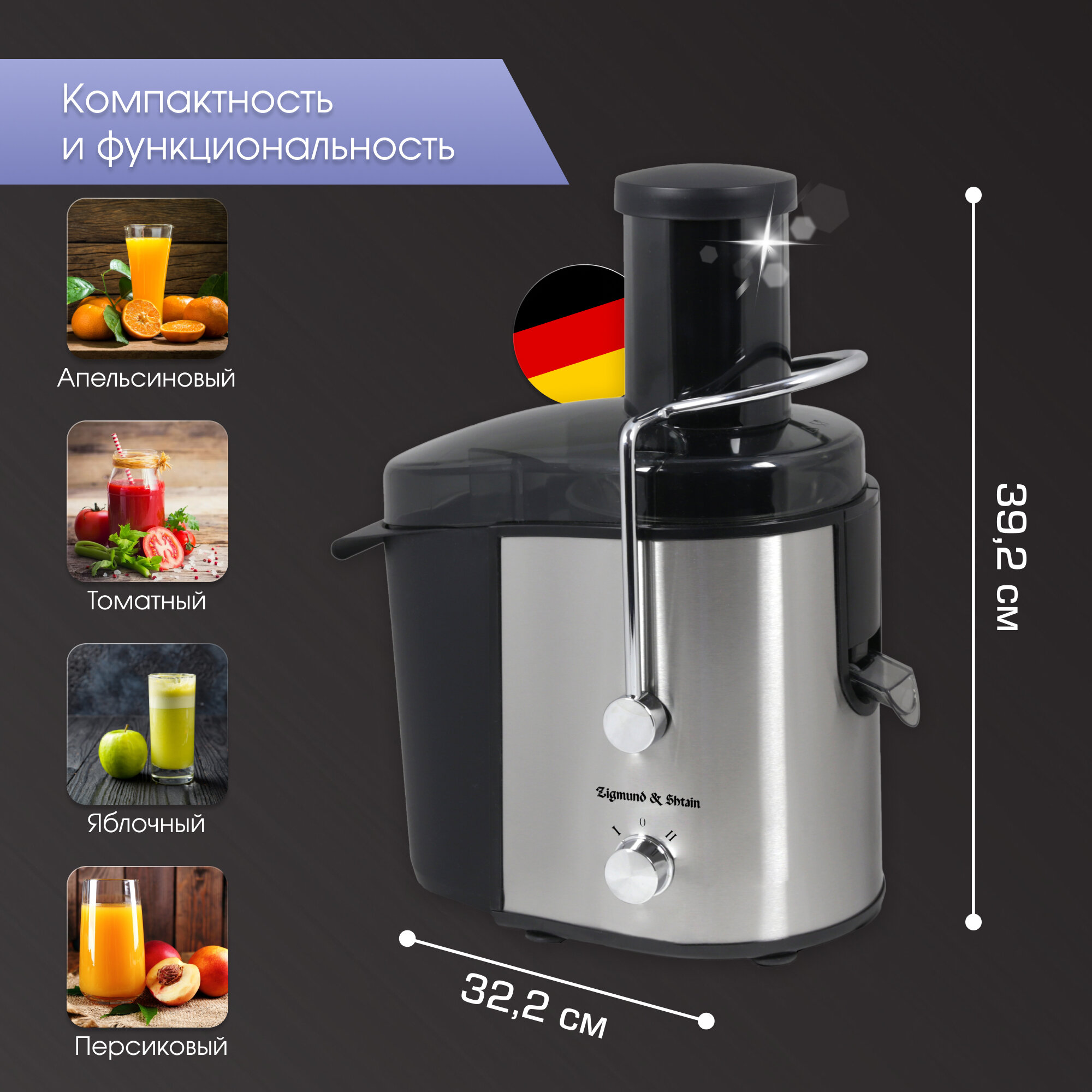 Соковыжималка Zigmund & Shtain EJ-751, электрическая, 1000 Вт, сталь