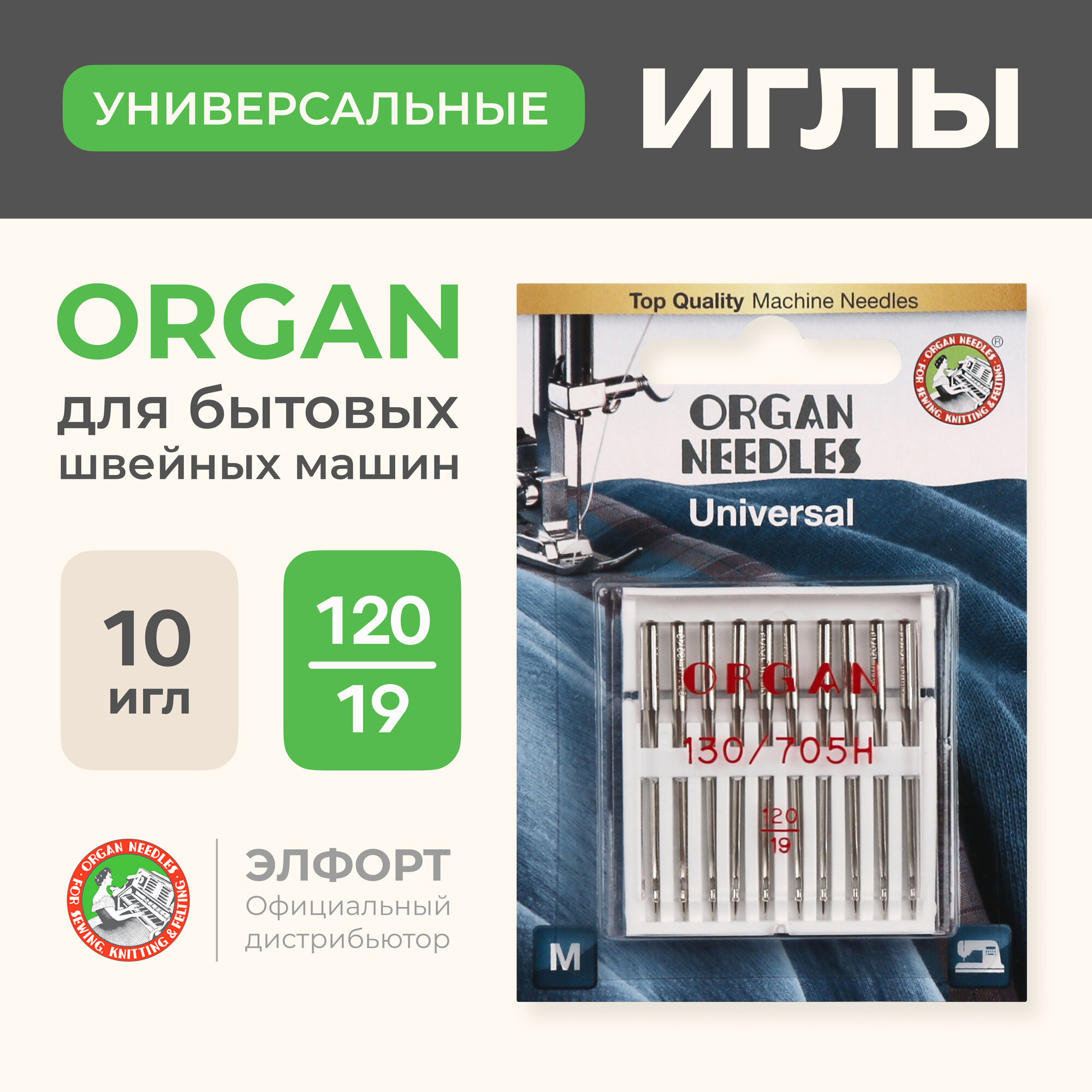 Иглы ORGAN универсальные №120 для БШМ уп.10 игл