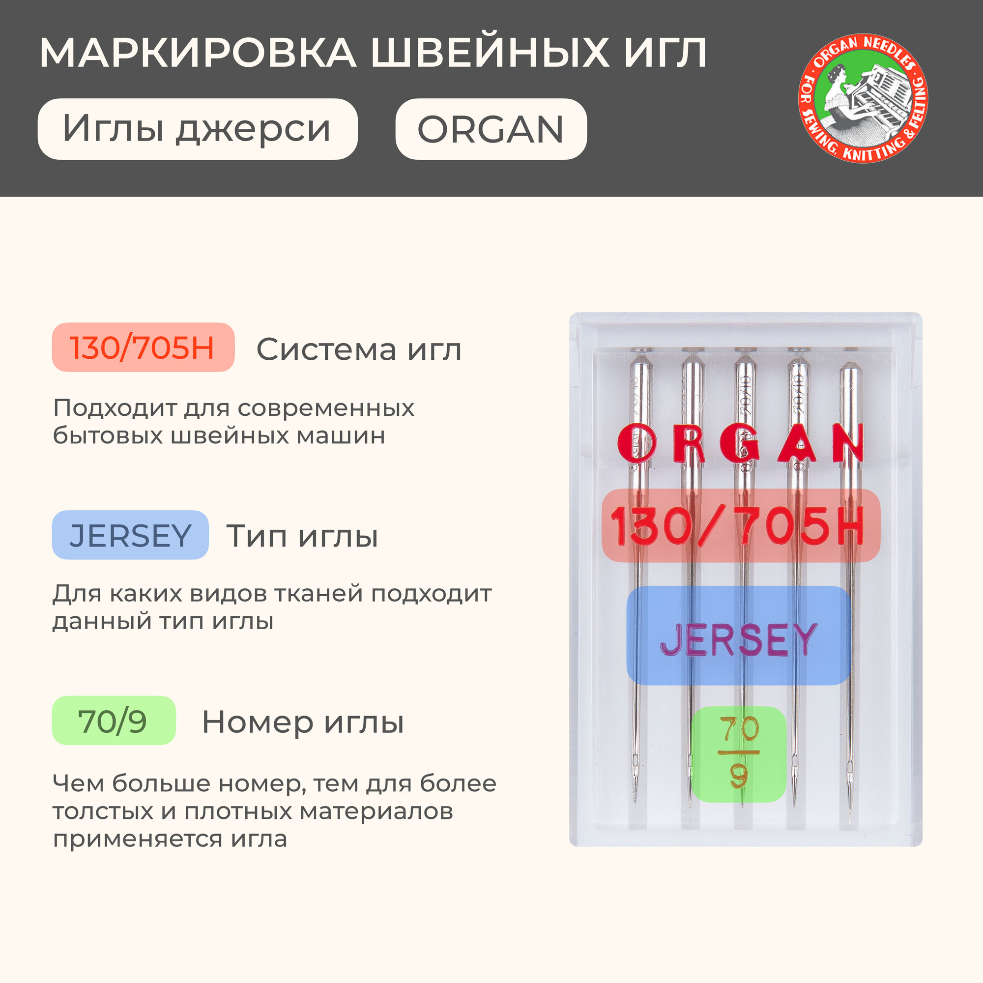 Иглы для швейных машин № 70 джерси, ORGAN, 5 шт в блистере