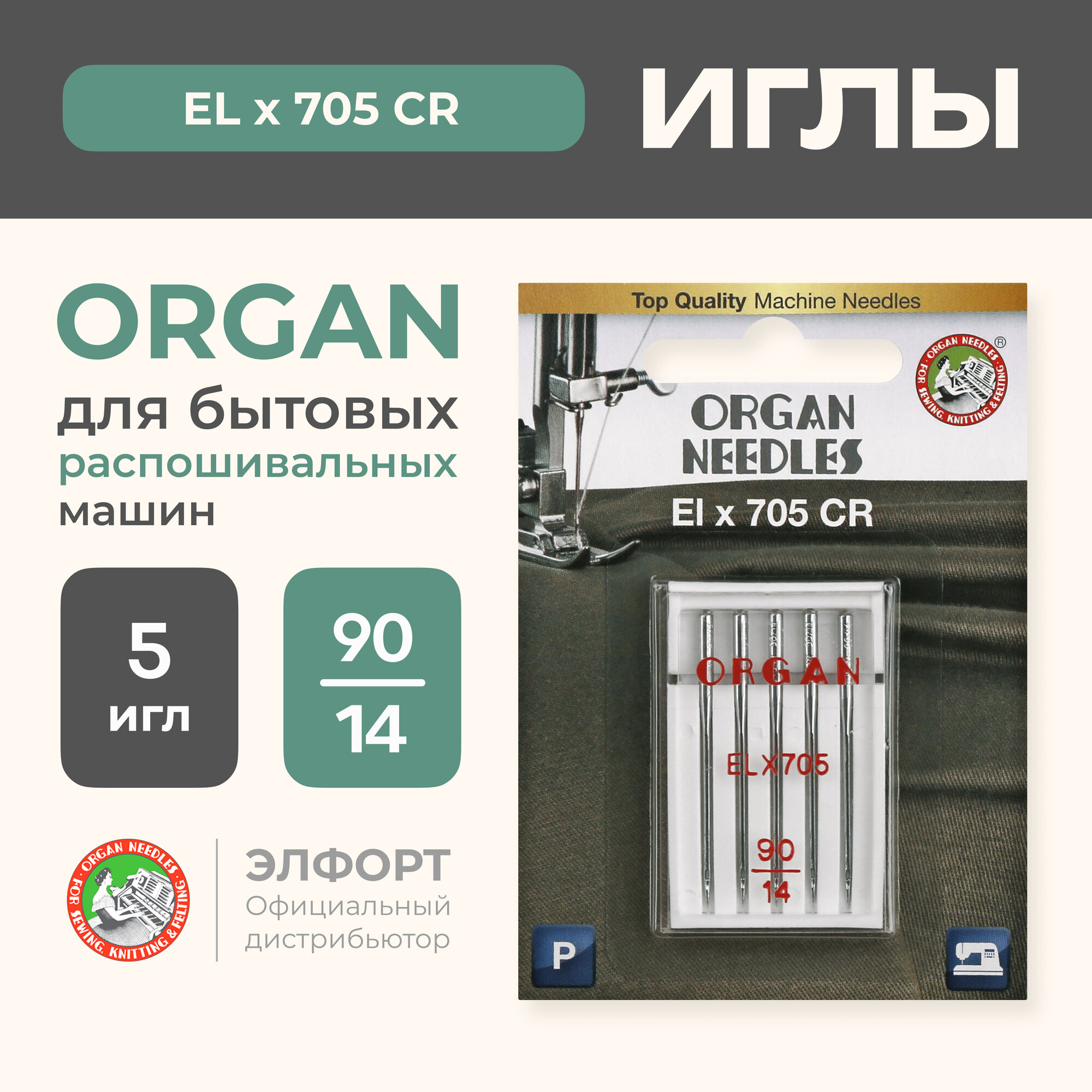 Иглы ORGAN EL*705 CR, №90, 5 шт (упак)