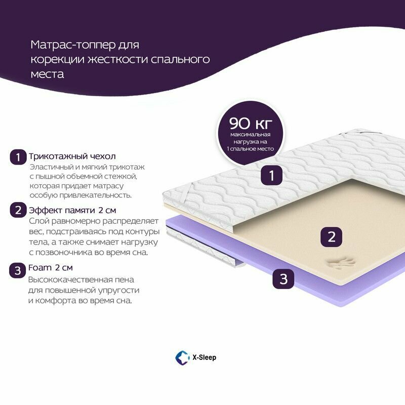 Матрас-топпер X-Sleep Basics Esempio 90х200, на кровать, на диван, беспружинный, эффект памяти