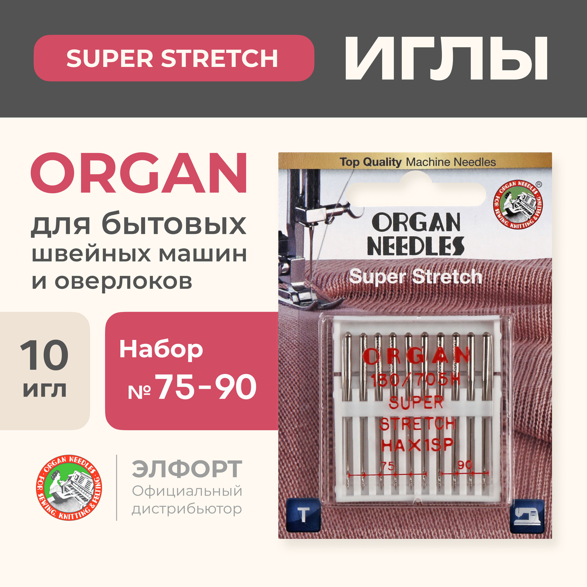 Иглы для швейных машин № 75-90 супер стрейч, ORGAN, 10 шт в блистере
