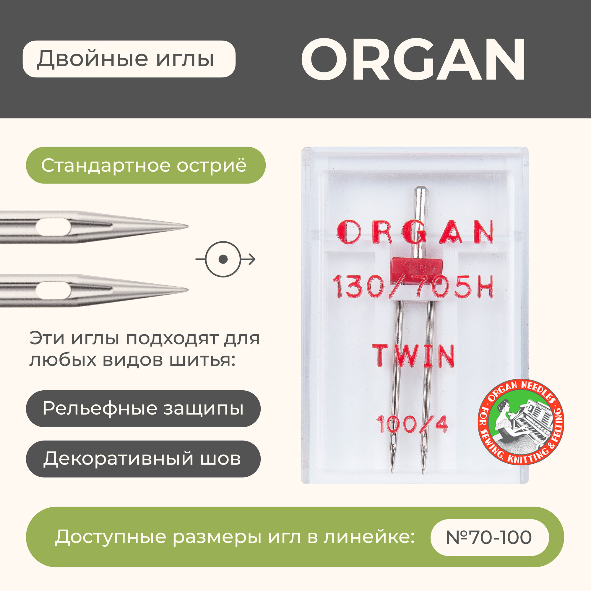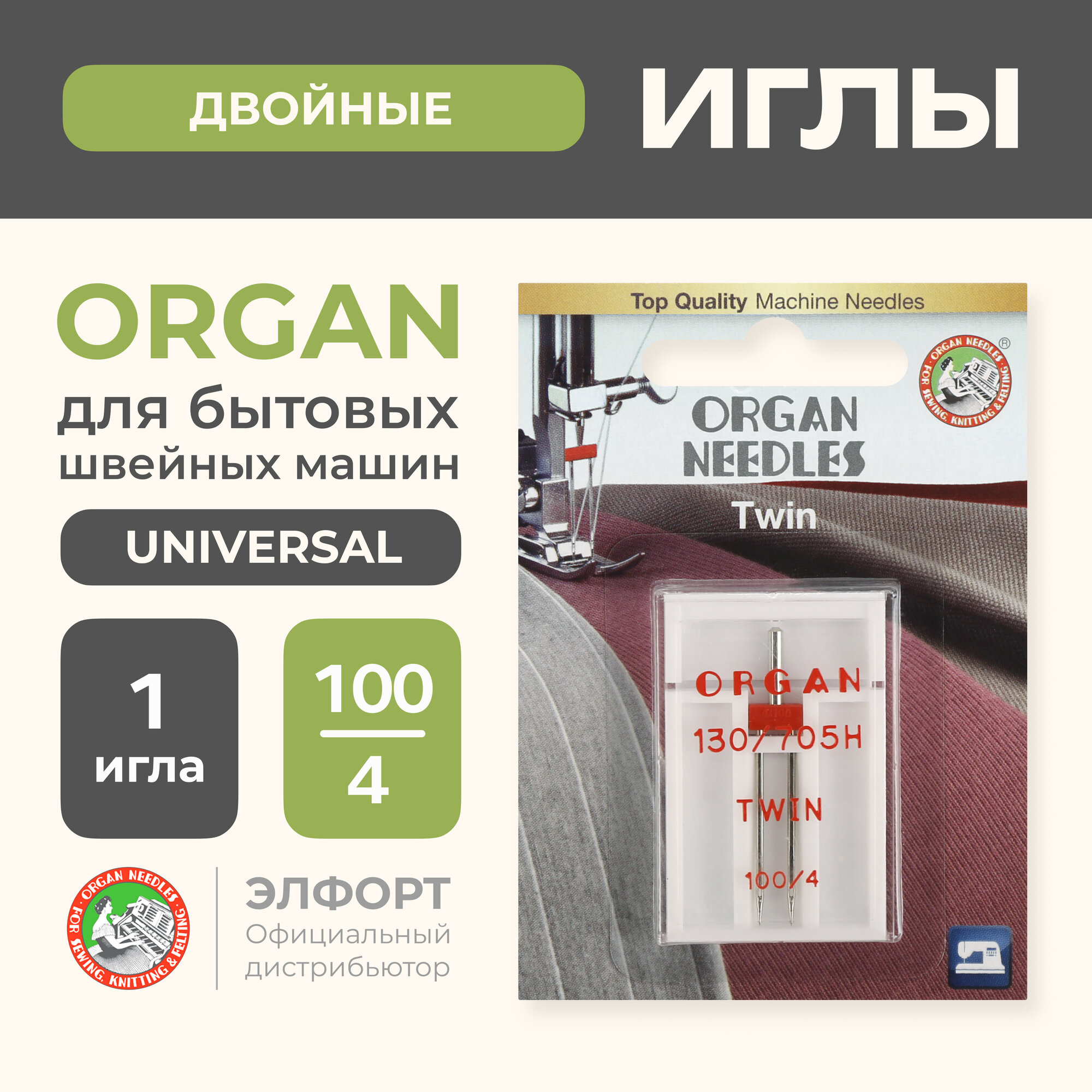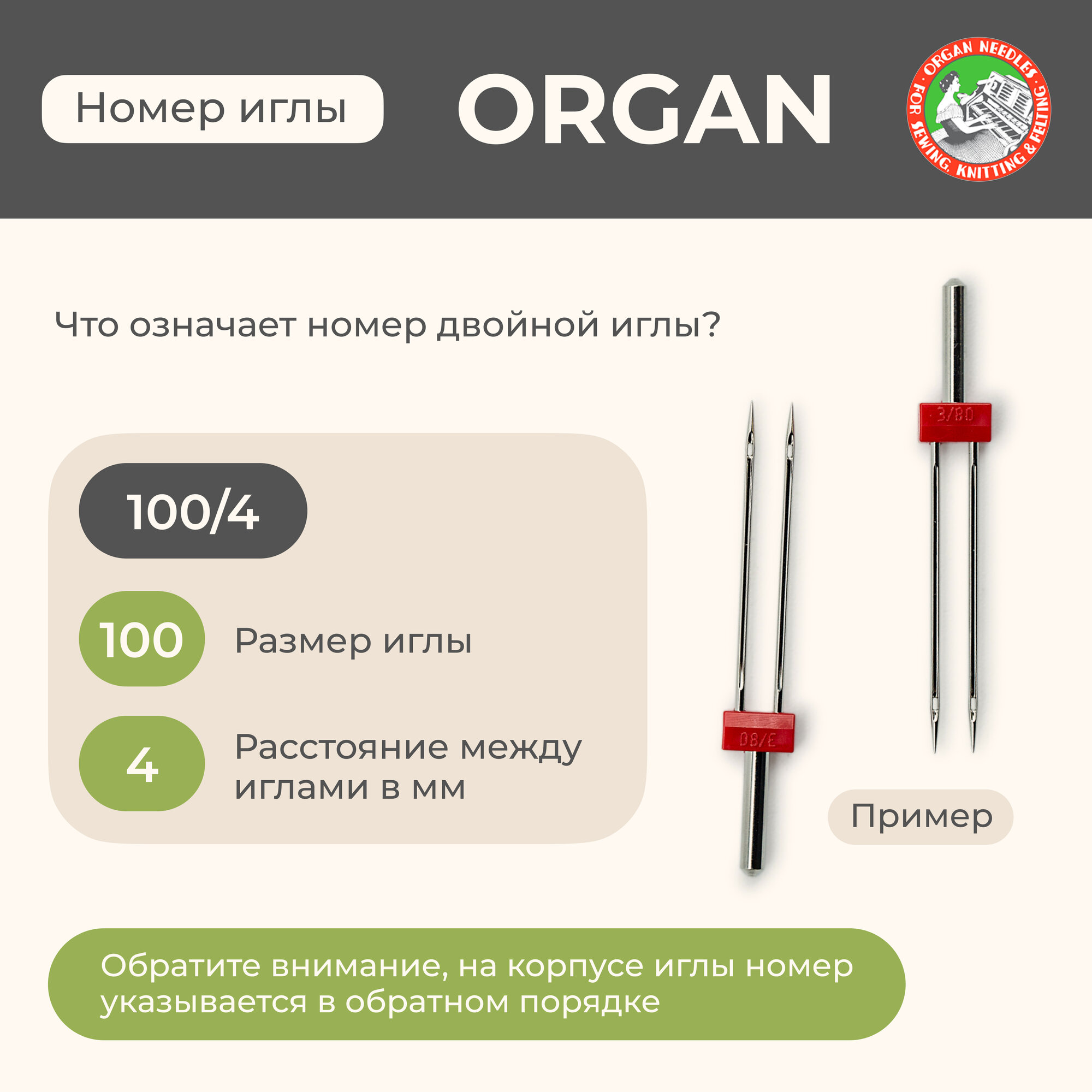 Иглы для швейной машины ORGAN двойные, № 100 4, упаковка 1 шт (ORGAN.ДВОЙНЫЕ100/4/1)