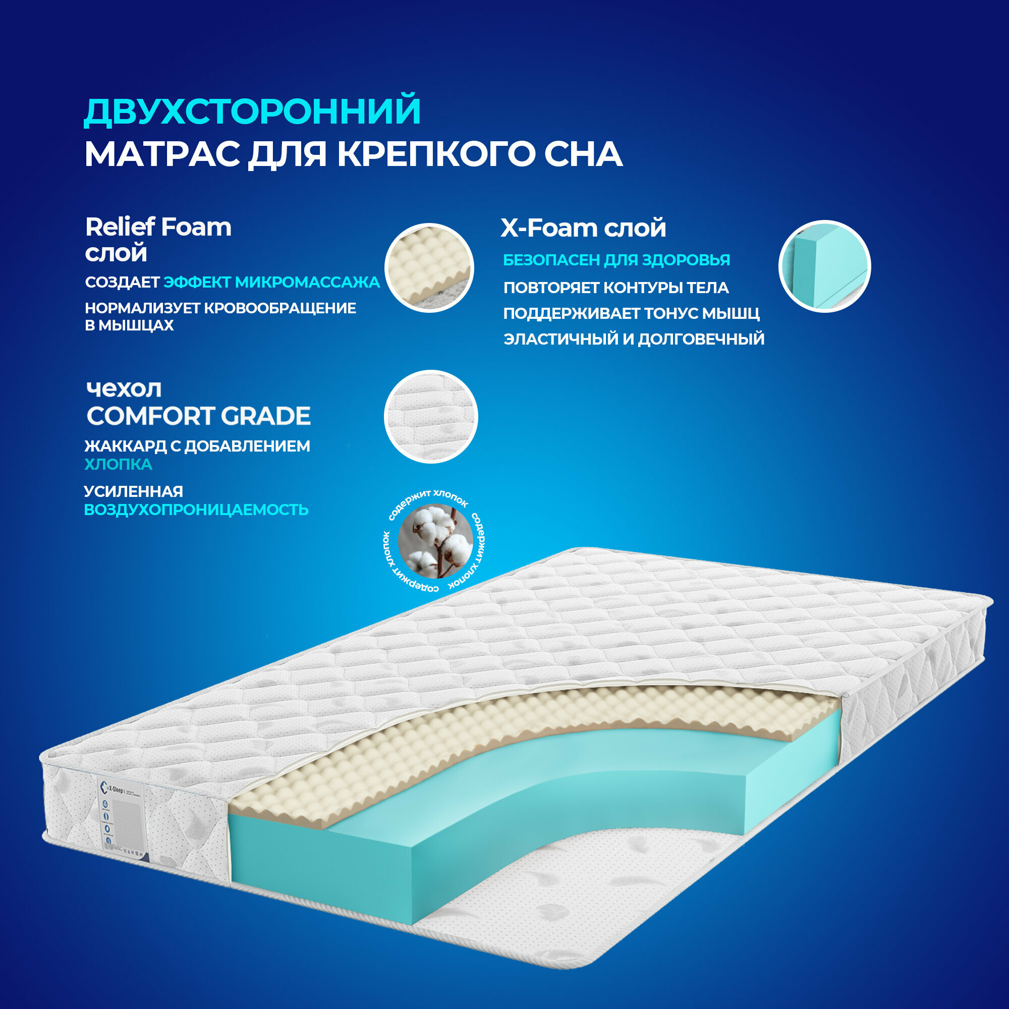 Матрас X-Sleep Roll Jelly 200х195, анатомический, беспружинный, эффект массажа, двусторонний