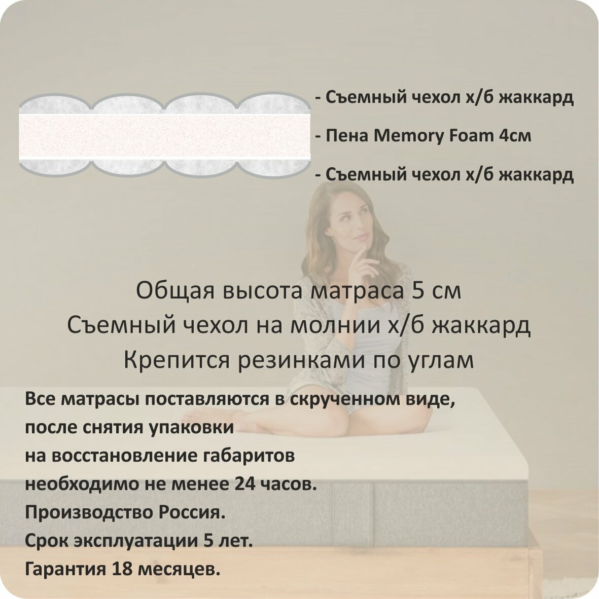 Анатомический матрас-топпер Albero "Мемори" 120х195, высота 5 см, беспружинный