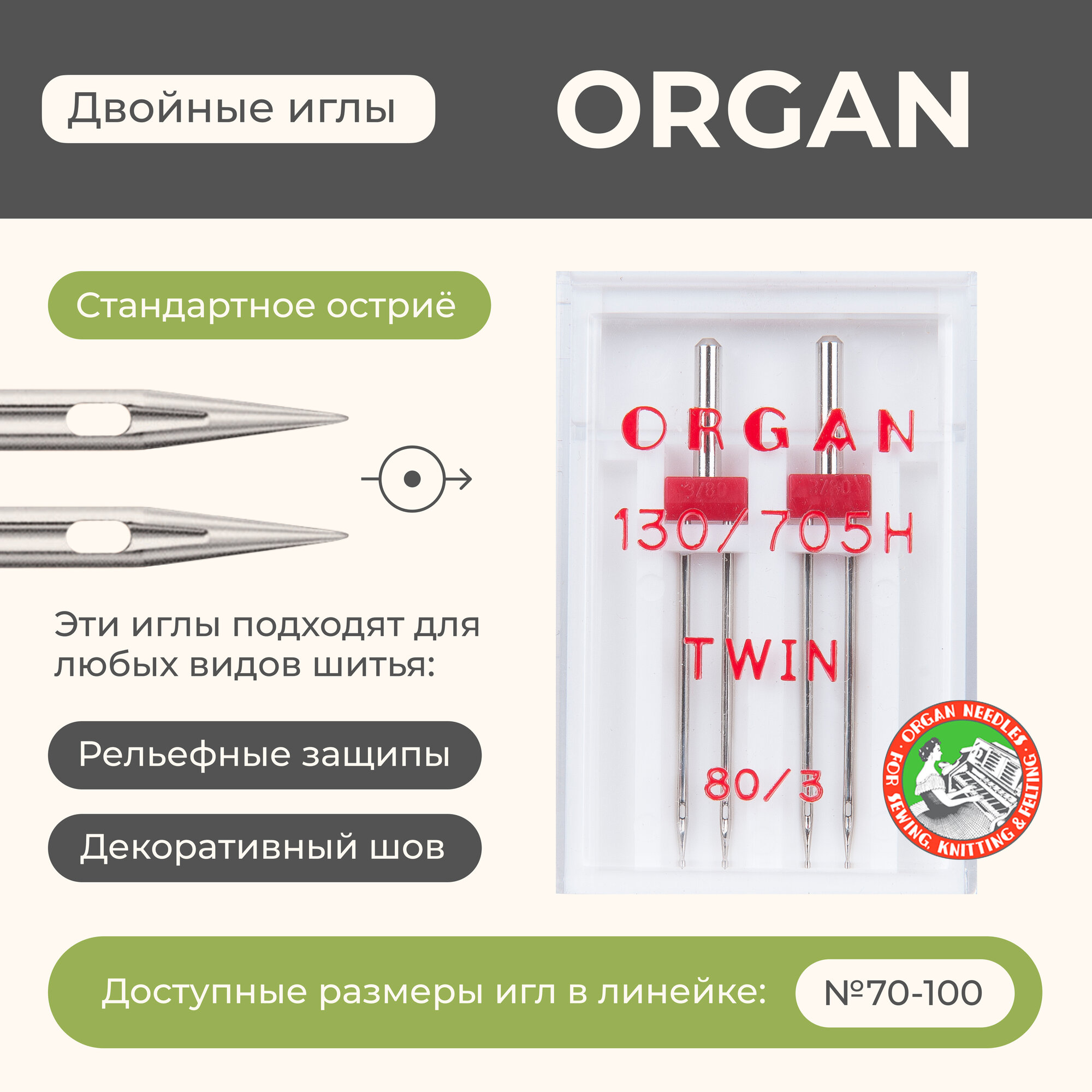 Organ иглы Двойные 2-80/3 блистер интересное:
