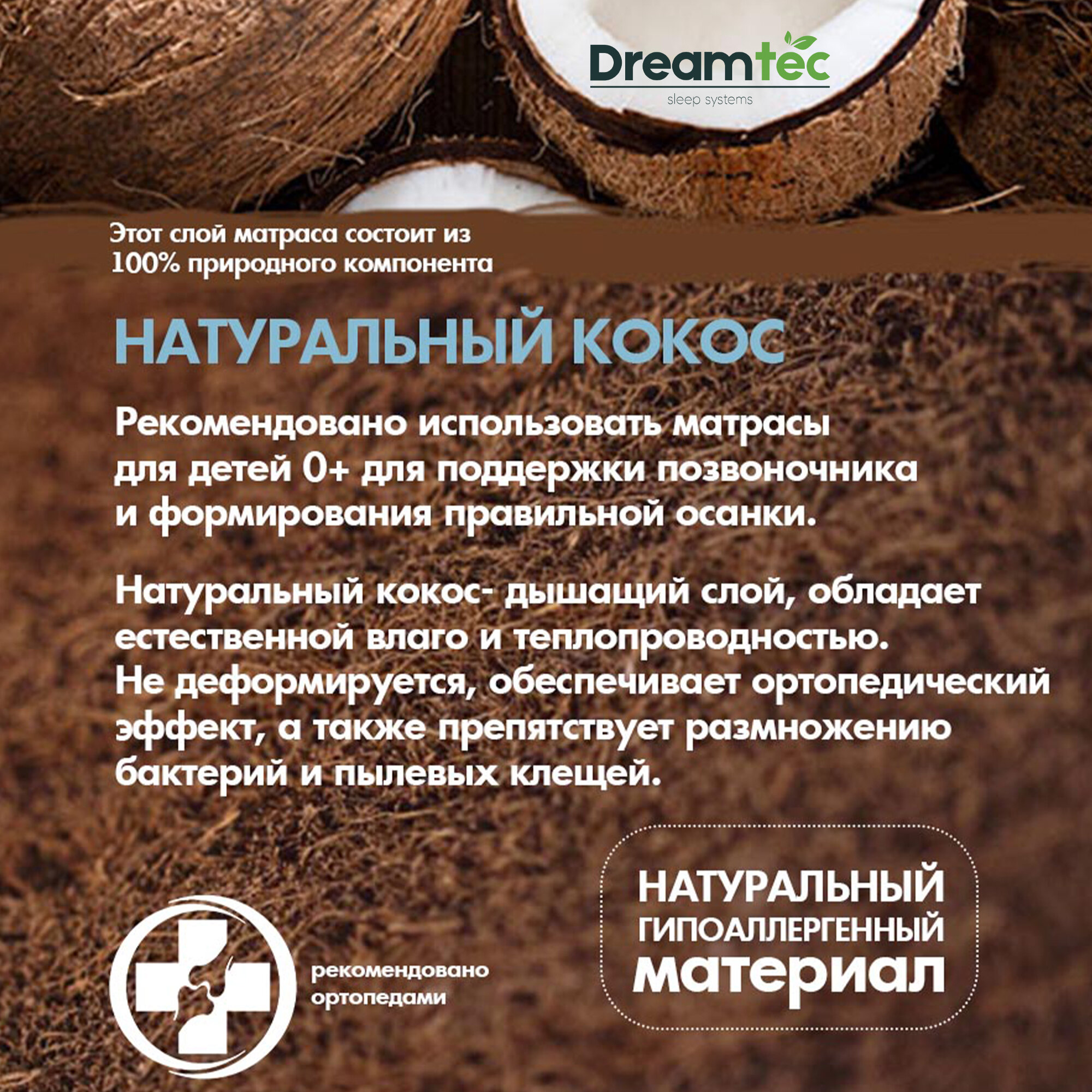 Матрас Dreamtec Roll Laurel 60х120, ортопедический, беспружинный, детский, эффект массажа, разная жесткость сторон