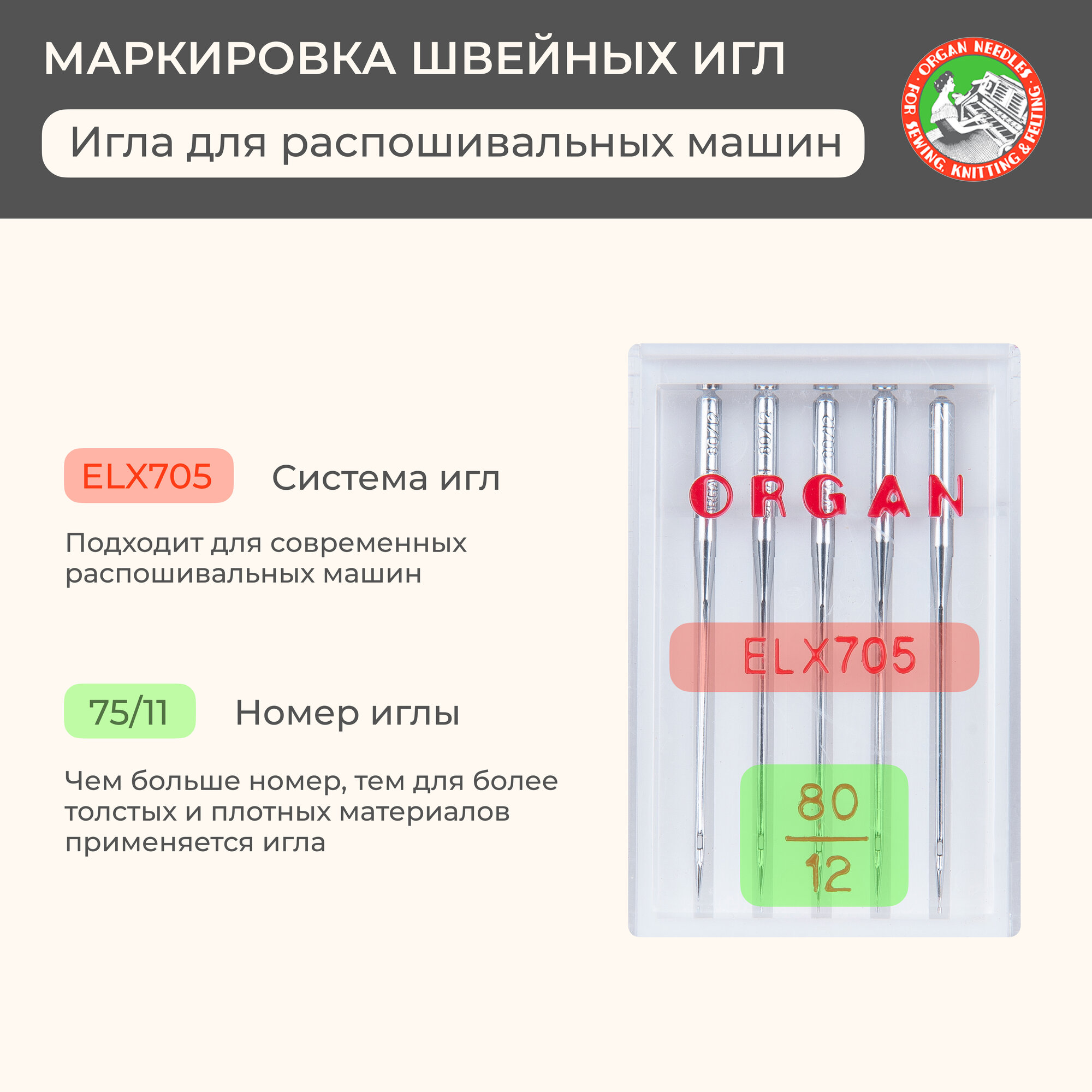 Иглы для швейной машины ORGAN EL x 705, № 80, упаковка 5 шт (ORGAN.ELX705.80/5)