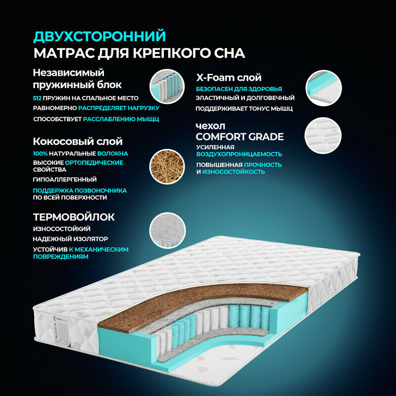 Матрас X-Sleep Orto Brio 145х190, ортопедический, независимые пружины, разная жёсткость сторон