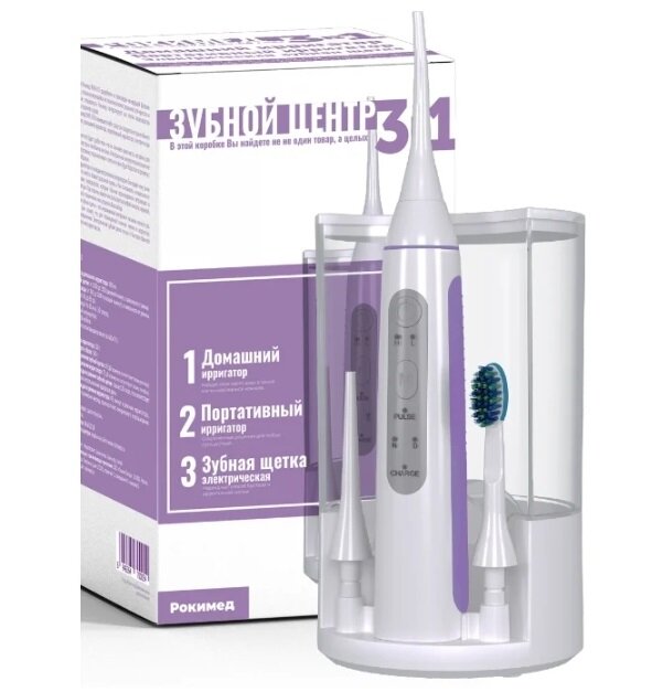 Портативный ирригатор Рокимед RKM 1301 для очистки полости рта с функцией электрической зубной щетки, серый.