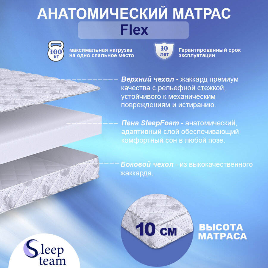 Матрас SleepTeam Flex 95х195, беспружинный, для кровати, высота 10 см, односпальный