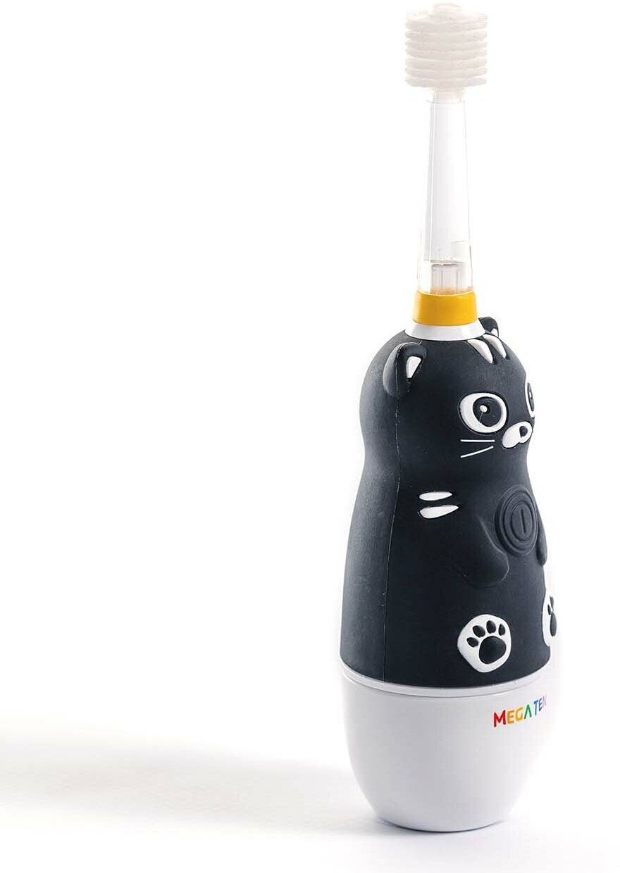 Купить Электрическая детская звуковая зубная щетка MEGA TEN megaten KIDS SONIC Котенок Black Edition