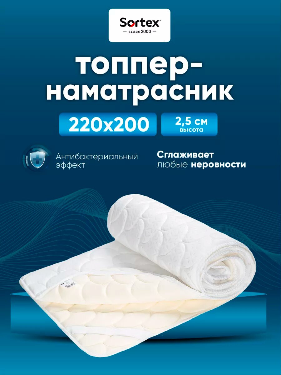 Купить Топпер наматрасник, на диван, на кровать, на матрас, Sortex, 220х200, ортопедический, жесткий, белый