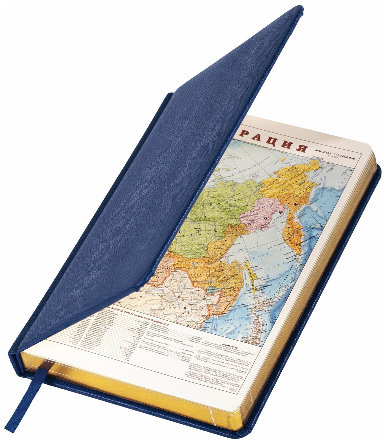 Ежедневник BRAUBERG недатированный, А5, 138х213 мм, Iguana, под зернистую кожу, 160 л., темно-синий, кремовый блок, золотой срез, 125091