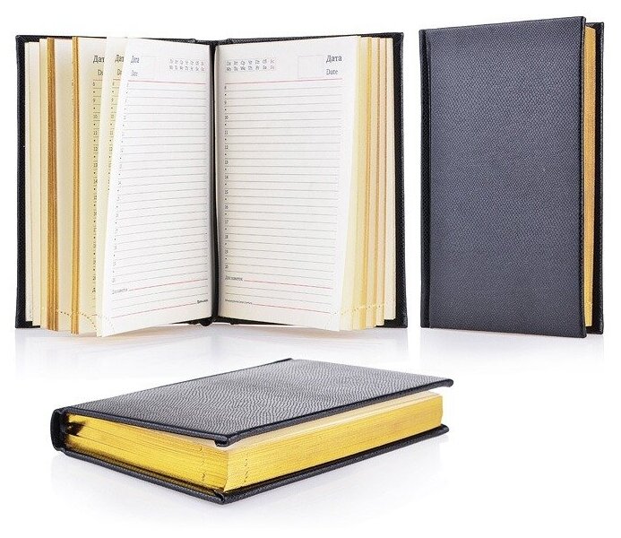 Brauberg Ежедневник недатированный малый формат (100х150 мм) А6, Brauberg "Iguana", под кожу рептилий, 160 л., золотой срез, черный